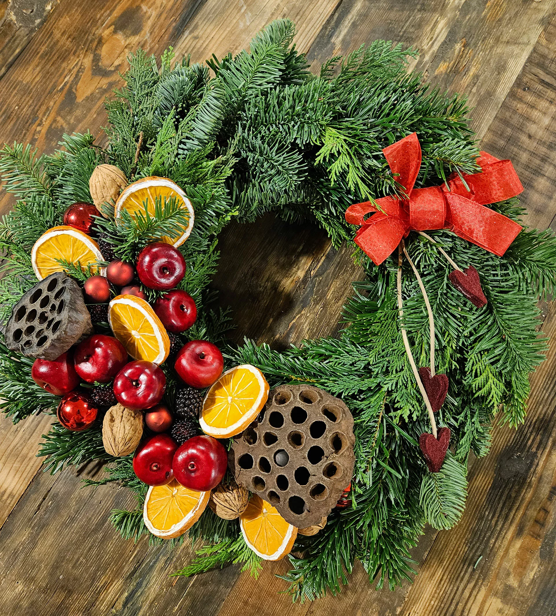 Köp till våran underbara flamsäkra dekorationsmossa, äpplen och LED ljus för ett komplett arrangemang.