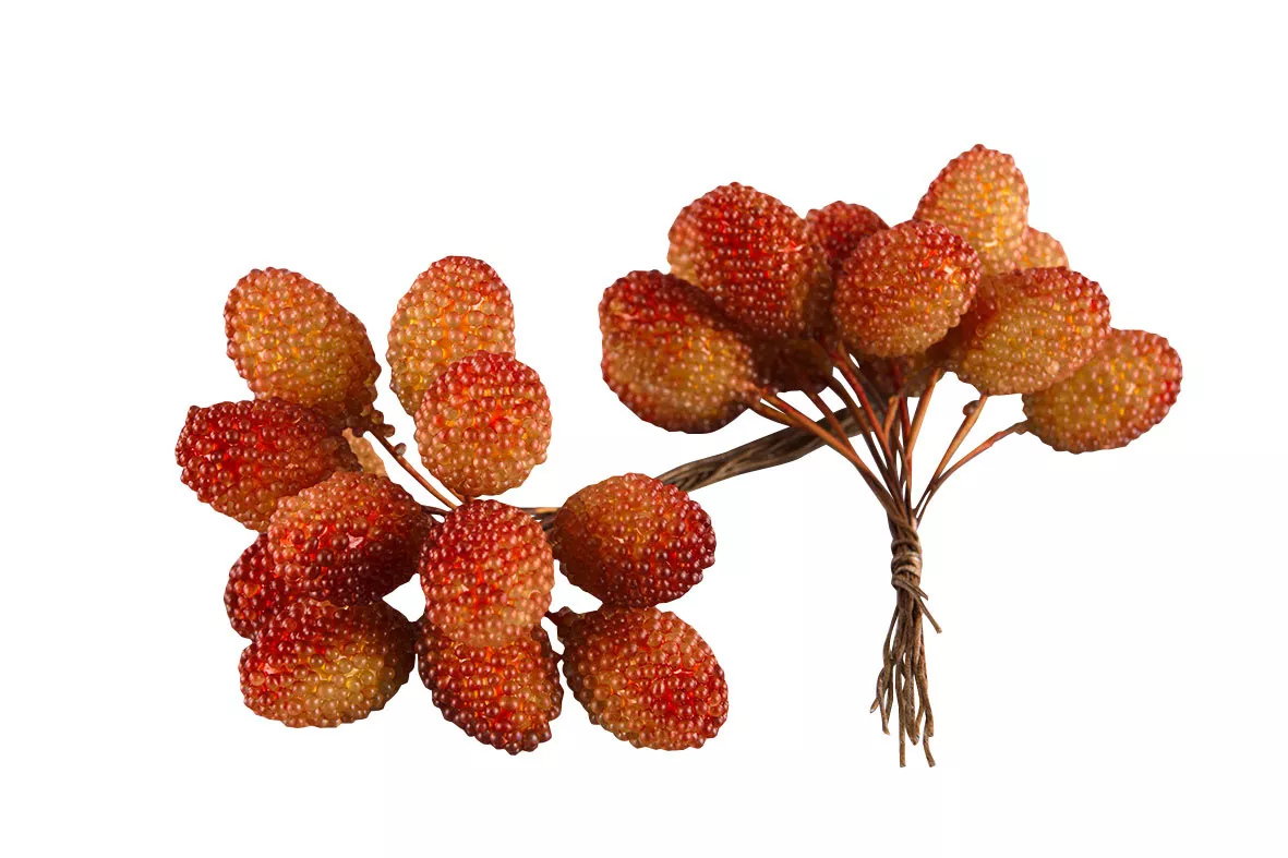 Bär björnbär orange dekoration på pinne. Säljs i 10-pack. Vattentålig.