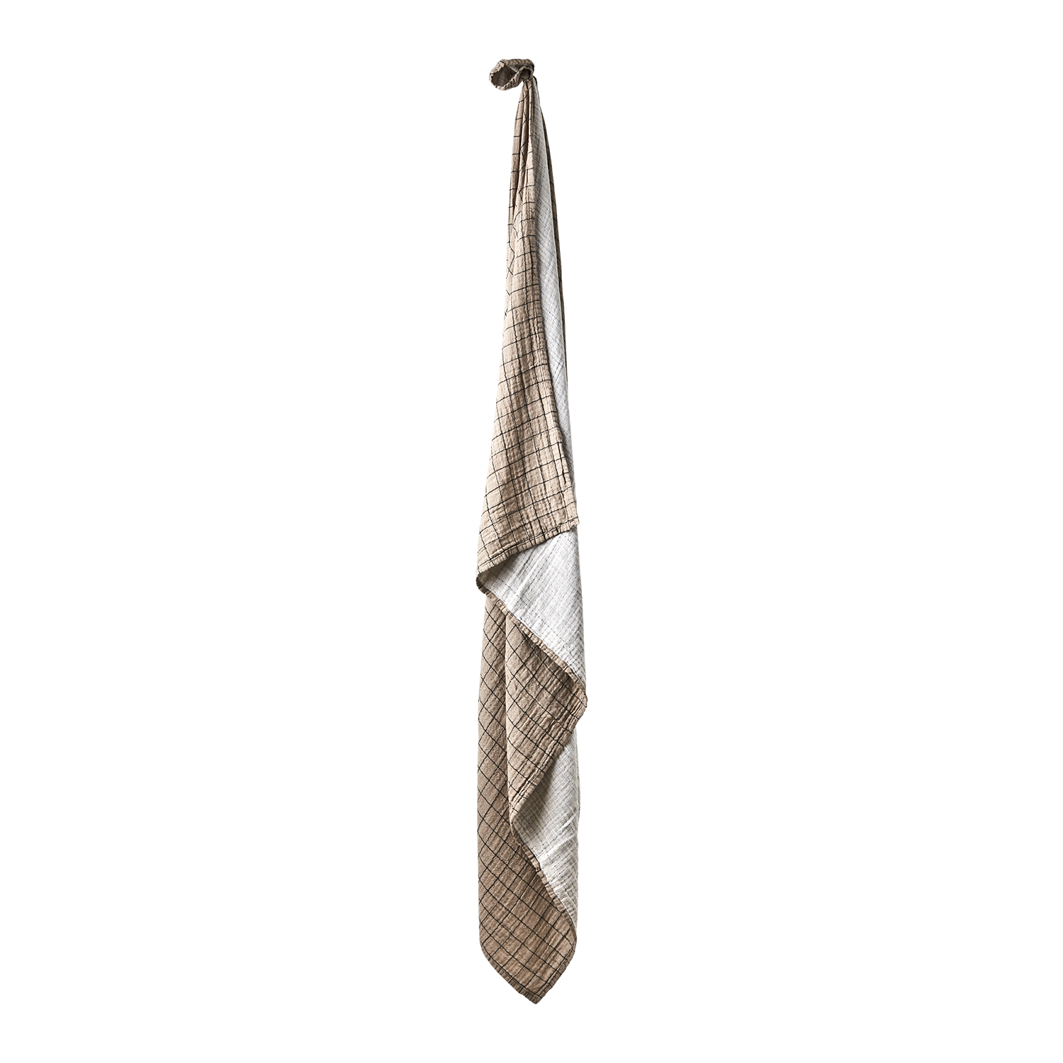 Underbar rutig bordsduk i bomull med beige / svarta rutor.