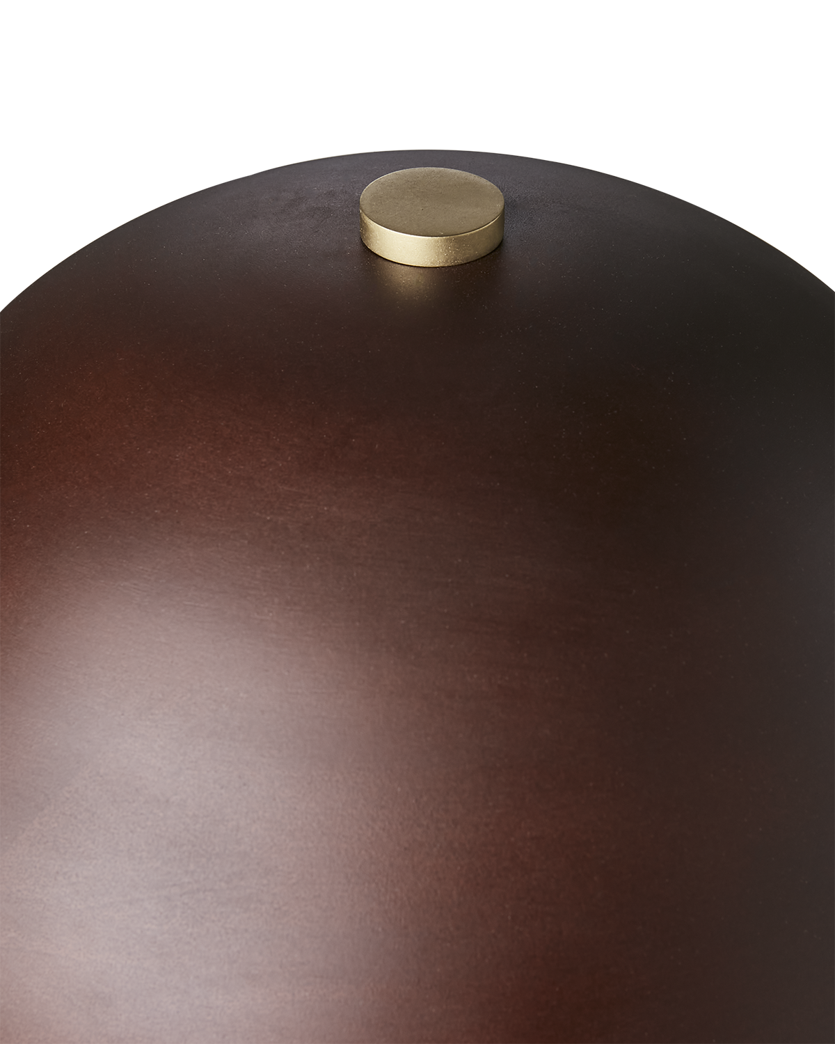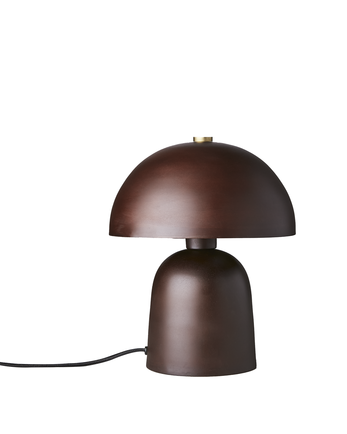 Rustik bordslampa / svamplampa i brunt järn som med sin unika form skapar ett mysigt sken i rummet.