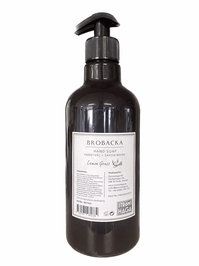 ”Brobacka är Strömshagas exklusiva kollektion med handtvålar, handkrämer, disktvålar och allrengöringsmedel som finns i flera olika dofter. Allt är naturligt och veganskt.”