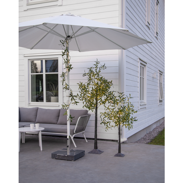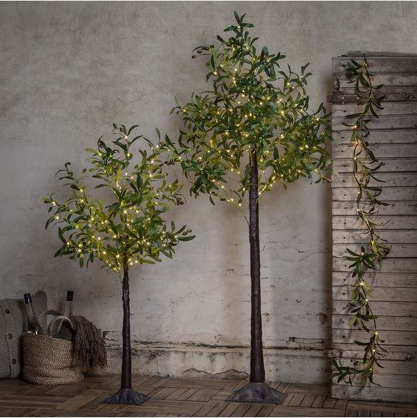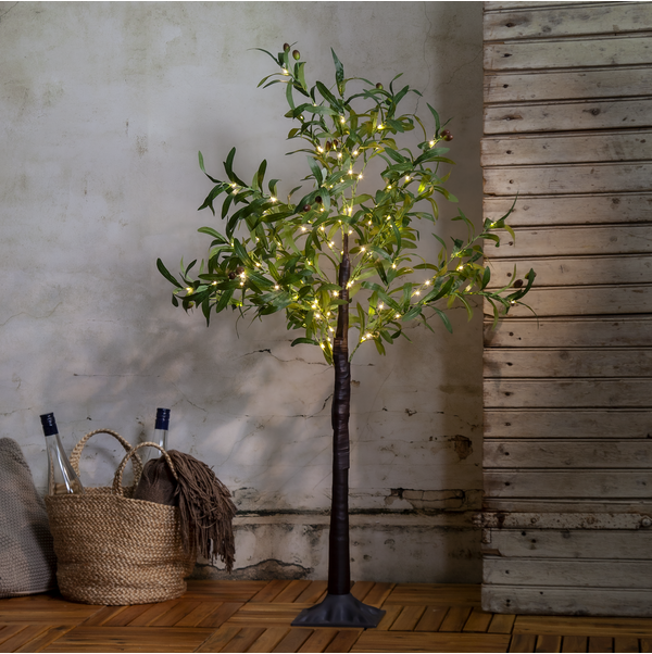Ett alldeles underbart dekorationsträd / olivträd med inbyggd LED belysning. Skapa en medelhavskänsla med detta naturtrogna konstträd med olivblad och oliver, 120 cm högt med 108 varmvita ljuspunkter. Ger ett mysigt ljussken. Drivs med en elkabel. Passar lika bra inne som ute.