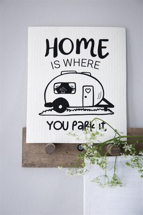 Disktrasan som är gjord för husvagns/camping-älskaren! Med texten ”Home is where you park it”.