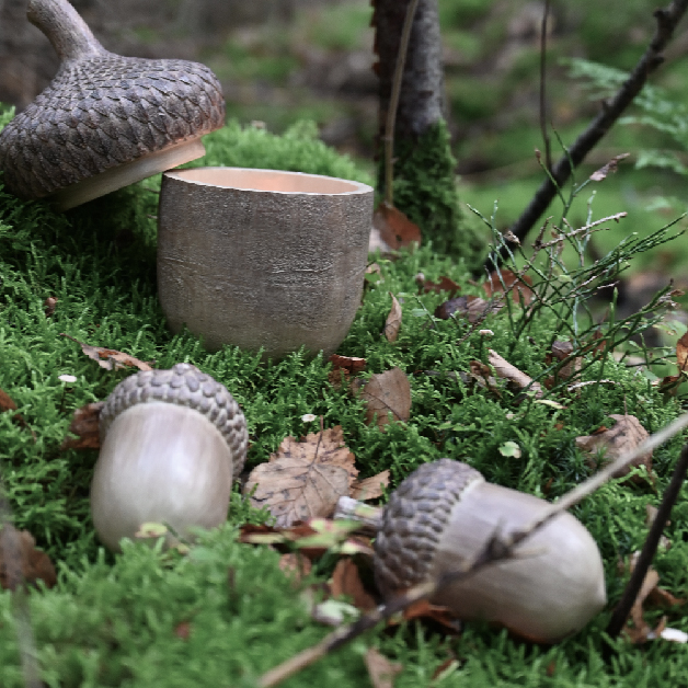Dekorativt ekollon att dekorera med, ser ut som trä men tillverkat i polyresin.