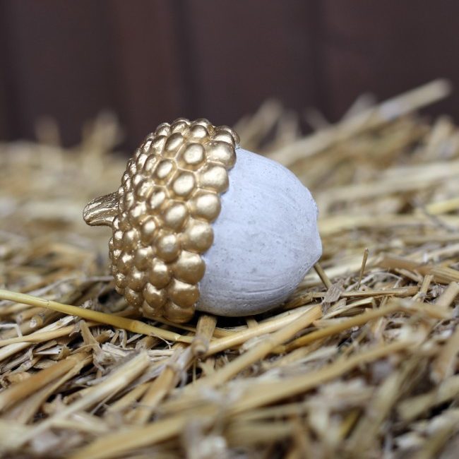 Finaste sötaste ekollon i grå betong med guldig topp. Så fina att dekorera med.
