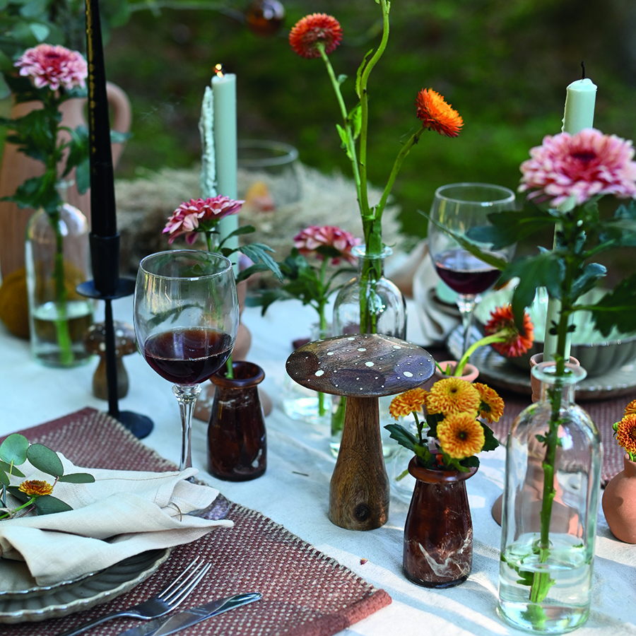 En dekorativ ljuslykta i form av en svamp i brunt glas med plats för värmeljus. Ljuslyktan skapar en mysig höstkänsla i ditt hem. Förstärk känslan genom att skapa ett stilleben med fler svampar eller ljuslyktor.