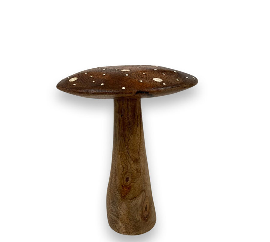 Söt flugsvamp i trä som är fin att dekorera med.