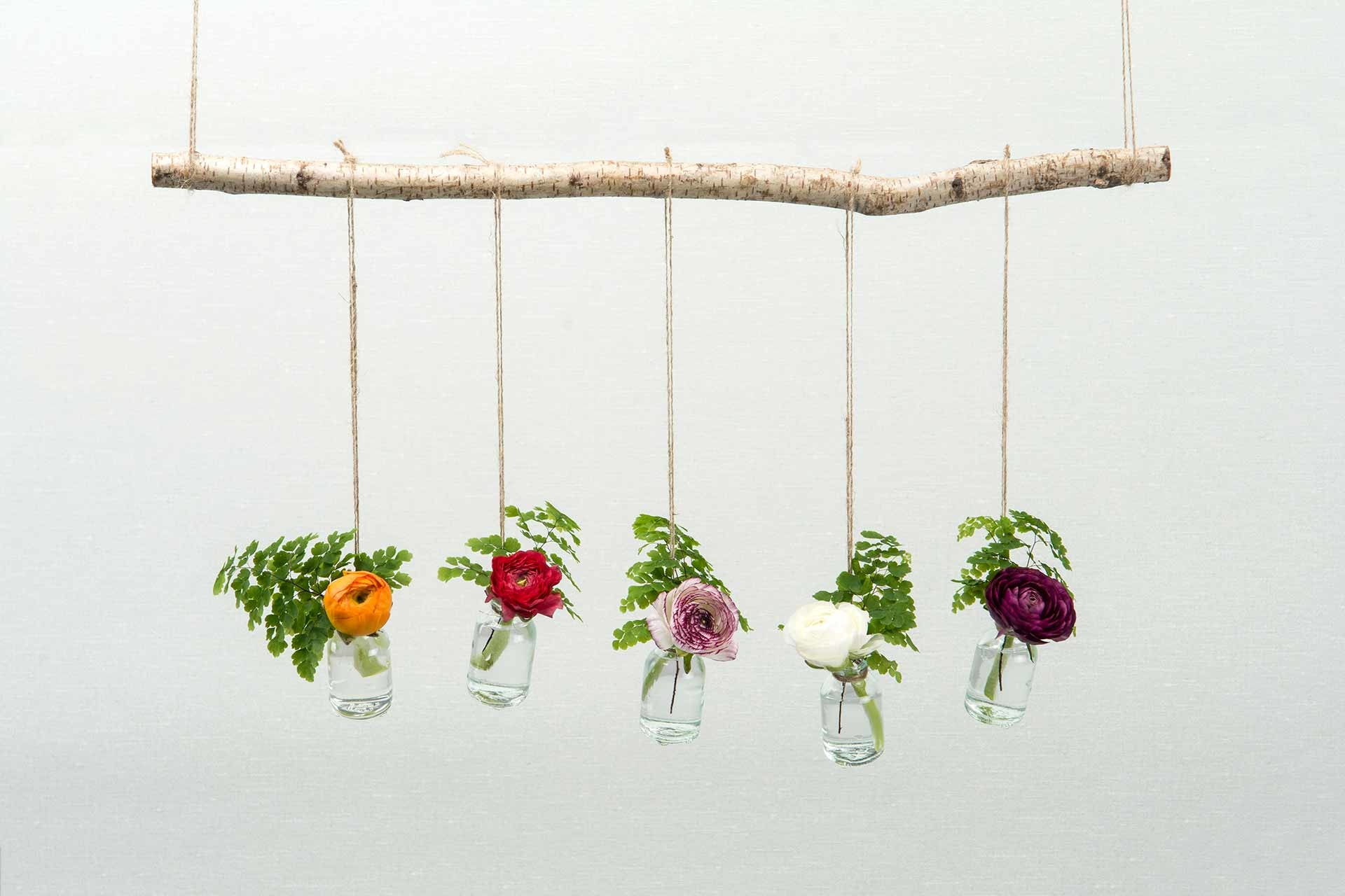 Placera dina bordsblommor i flaskor för en mysig lantlig touch på bröllopet.