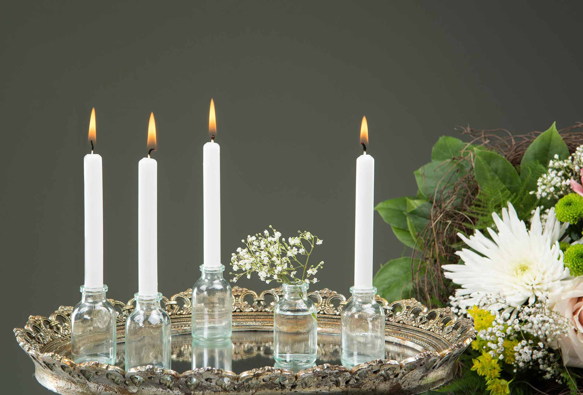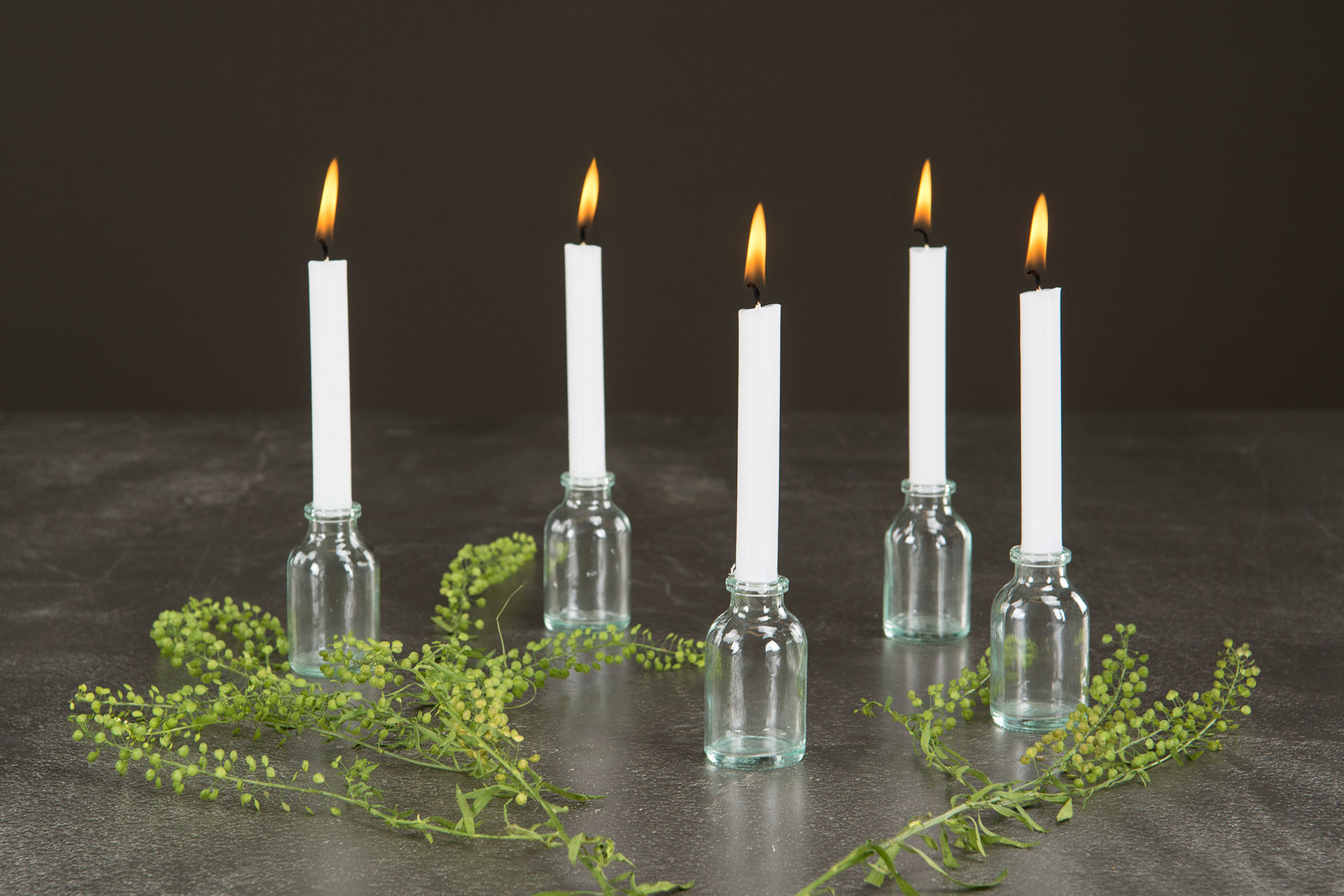 Maffig lång bordsljusstake för 10 st kronljus. Jättefin att dekorera efter årstid, tex med rönnbär, äppelkvistar, mossa och granris.