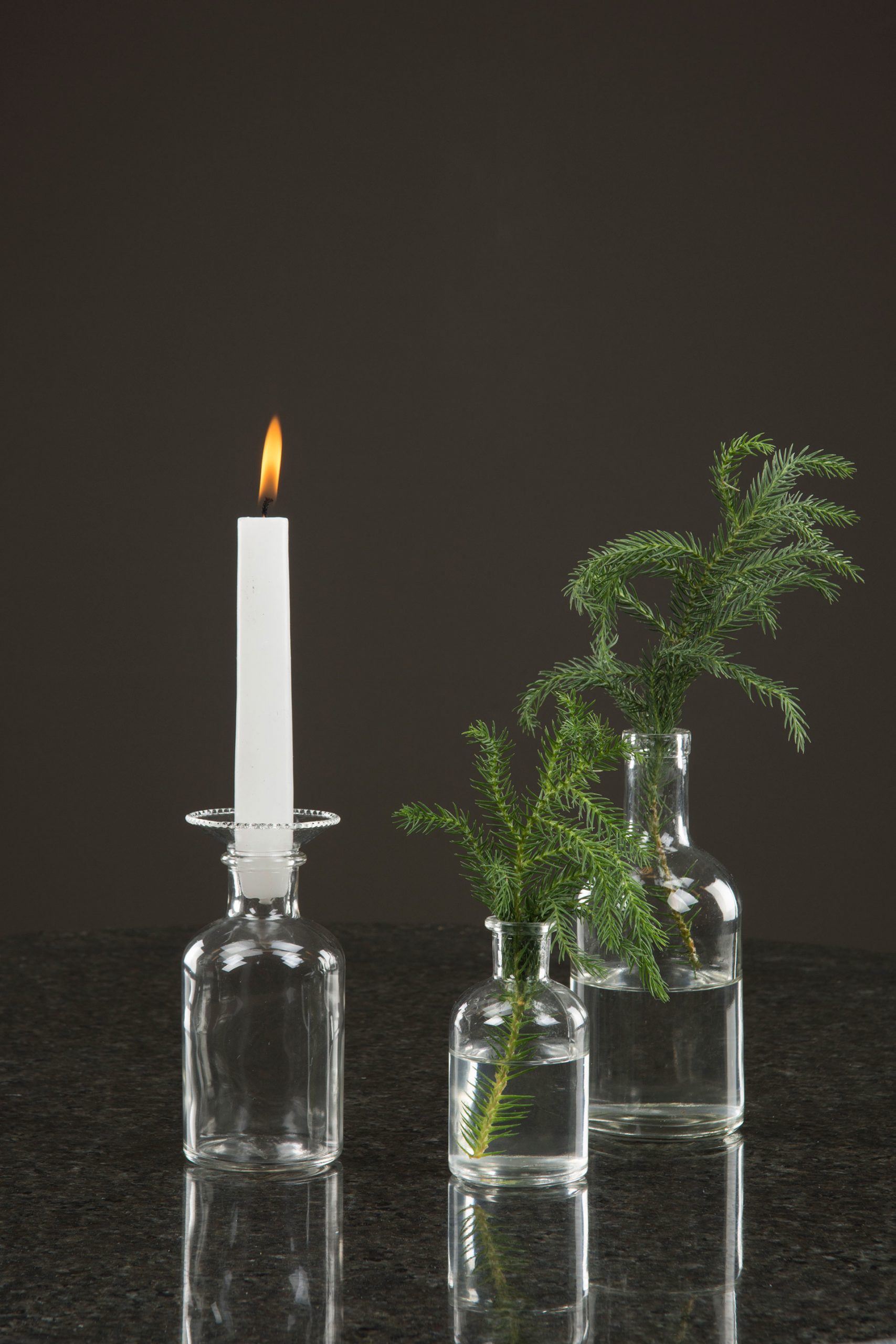 Placera dina bordsblommor i flaskor för en mysig lantlig touch på bröllopet.