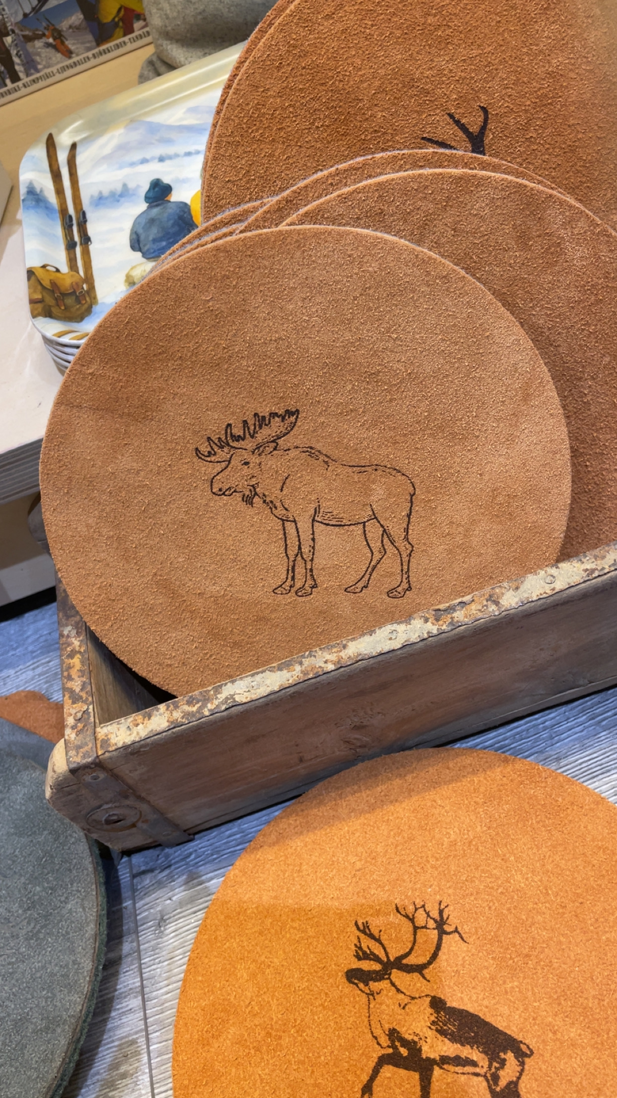 Handgjort grytunderlägg på 20 cm, med motivet av skogens konung – älgen. Lokalproducerade i Sverige.