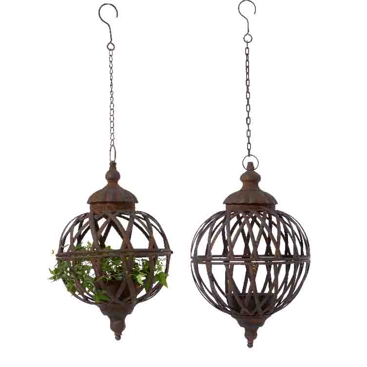 Vacker hängande ampel i rostig metall. Finns i 2 storlekar. Detta är den mindre modellen. Uttagbar kruka inuti.