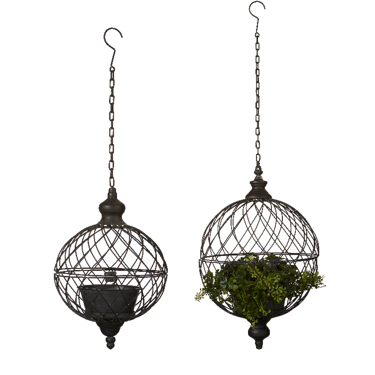Vacker hängande ampel i svart metall. Finns i 2 storlekar. Detta är den mindre modellen. Uttagbar kruka inuti.