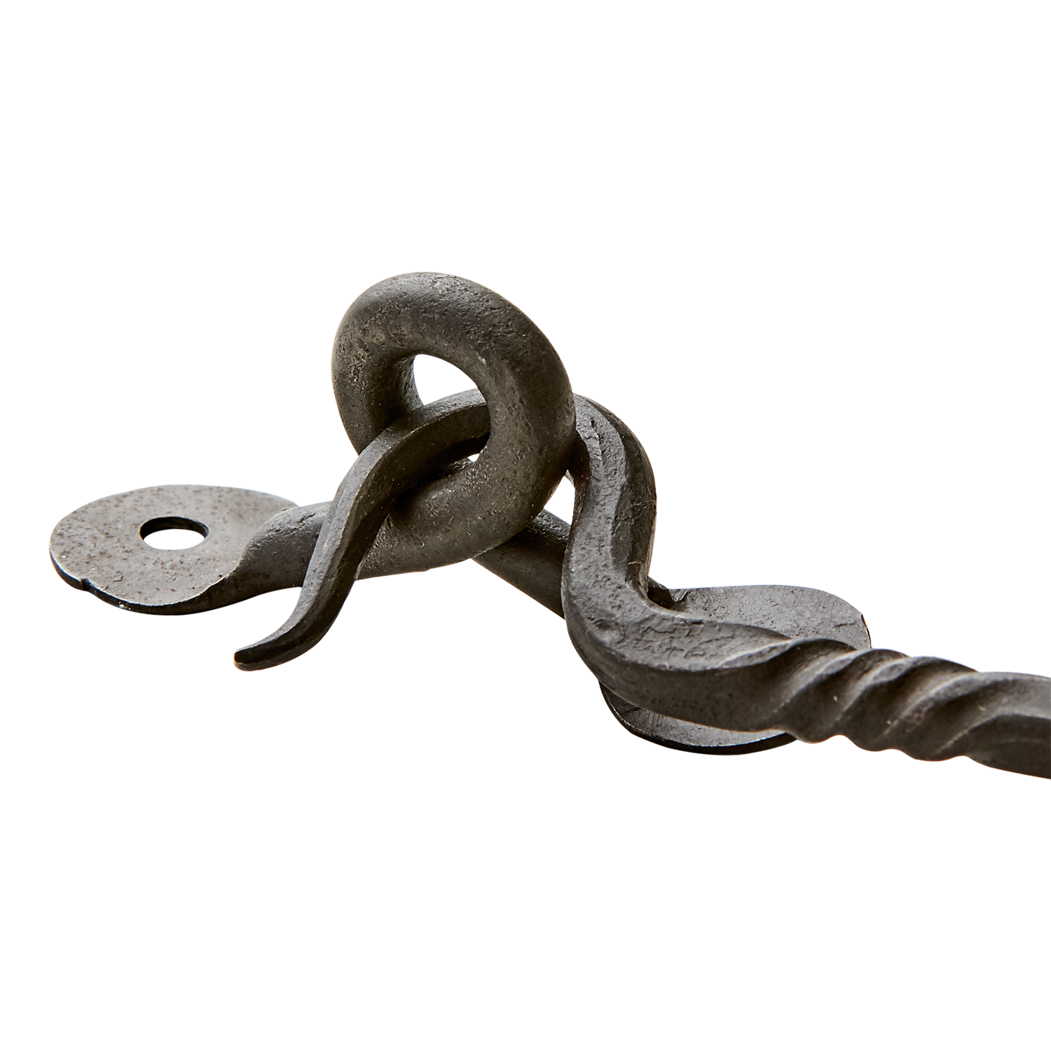 Handgjord smides krok i svart järn.