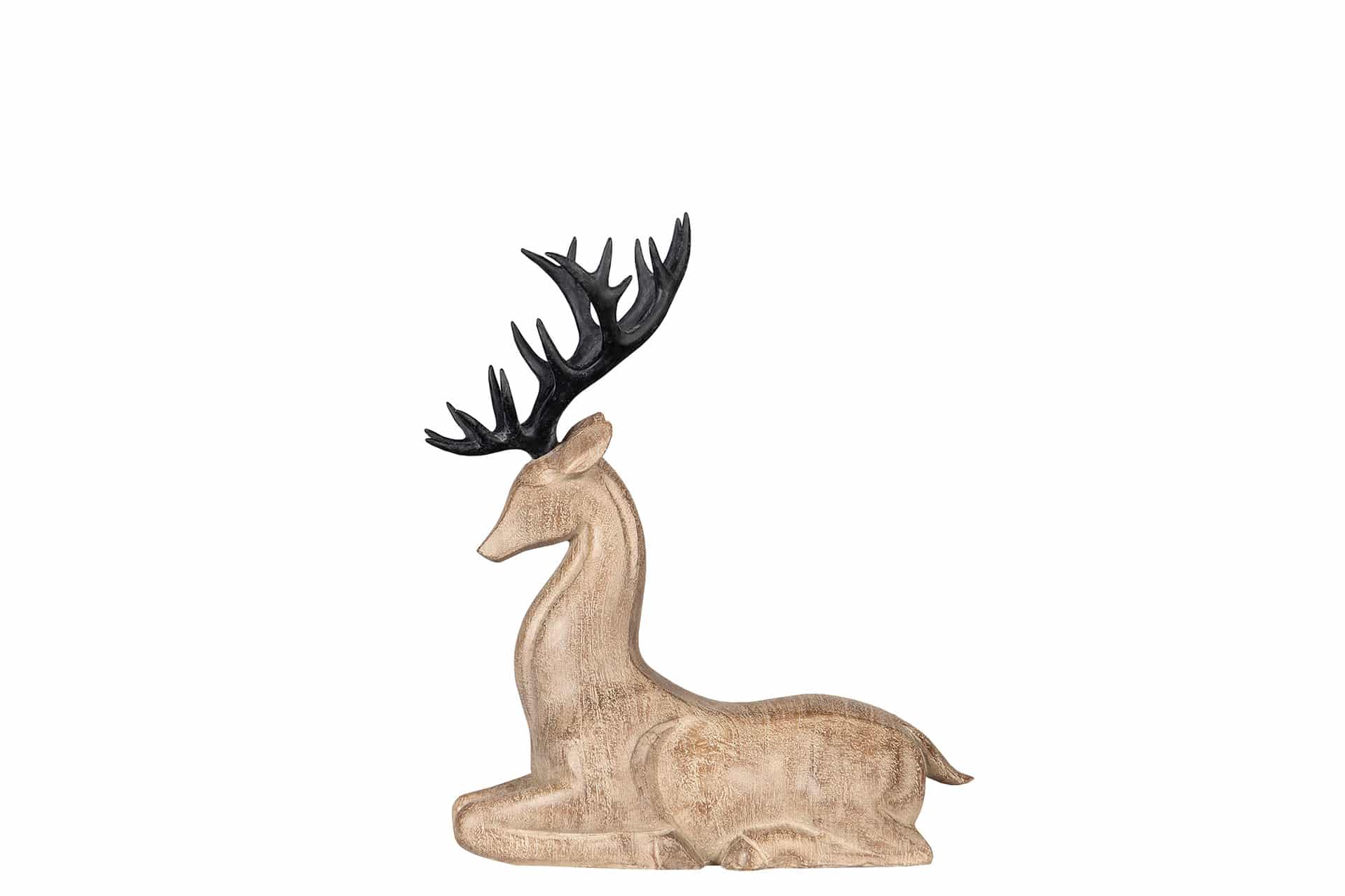 Vacker hjort att dekorera hemmet med. Hjorten har en melerad brun/beige färg med svarta horn. Den passar perfekt i fjällstugan!
