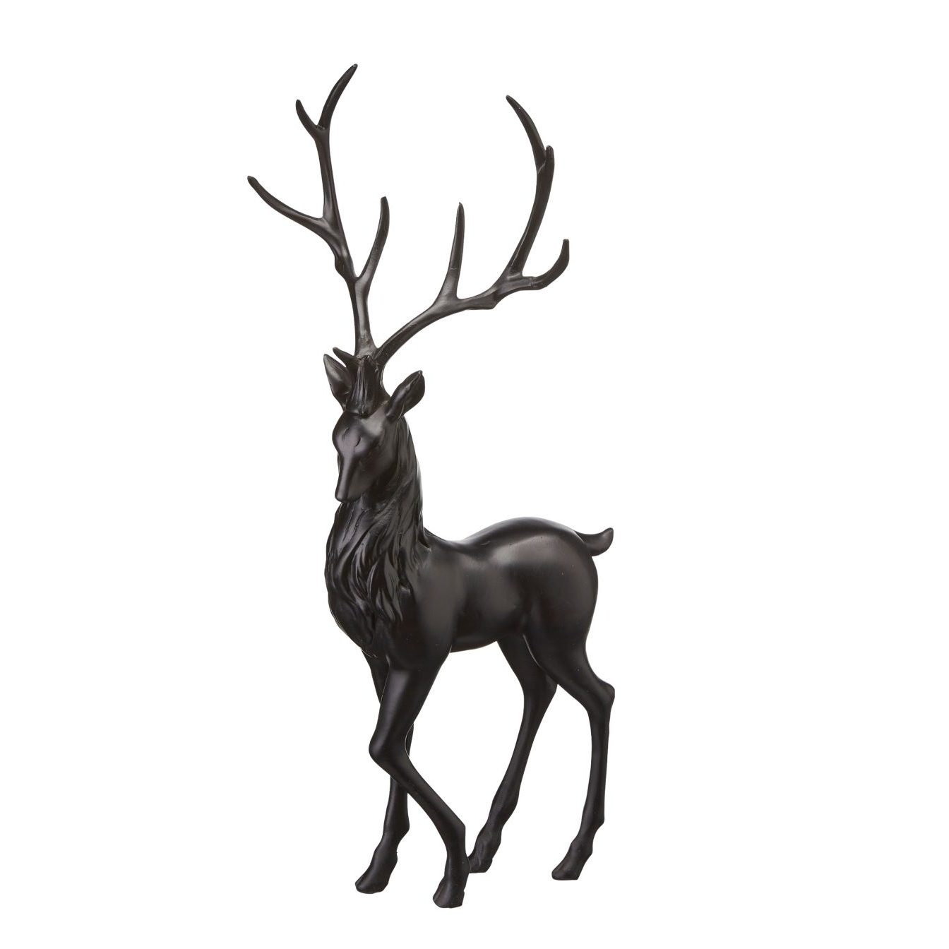 Stilren inredningsdetalj i form av en matt svart hjort.