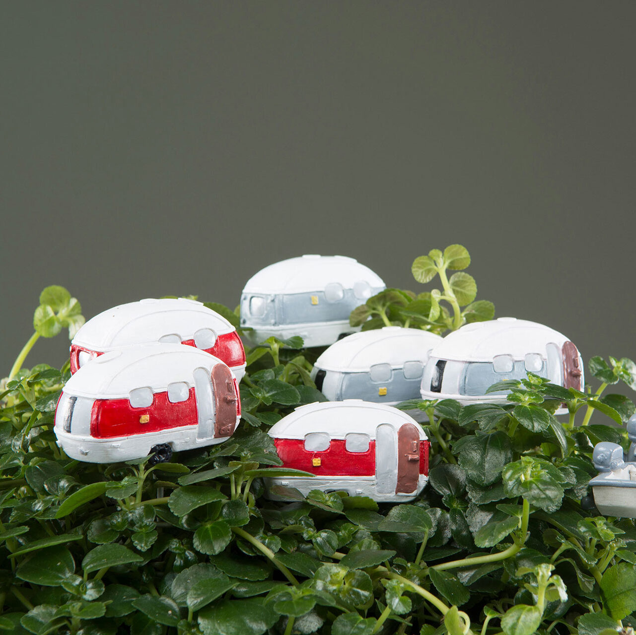 Söta husvagnar på pinne / blomstick att sticka ner i blomkrukan eller buketten. Tål vatten. Säljs i 2-pack.