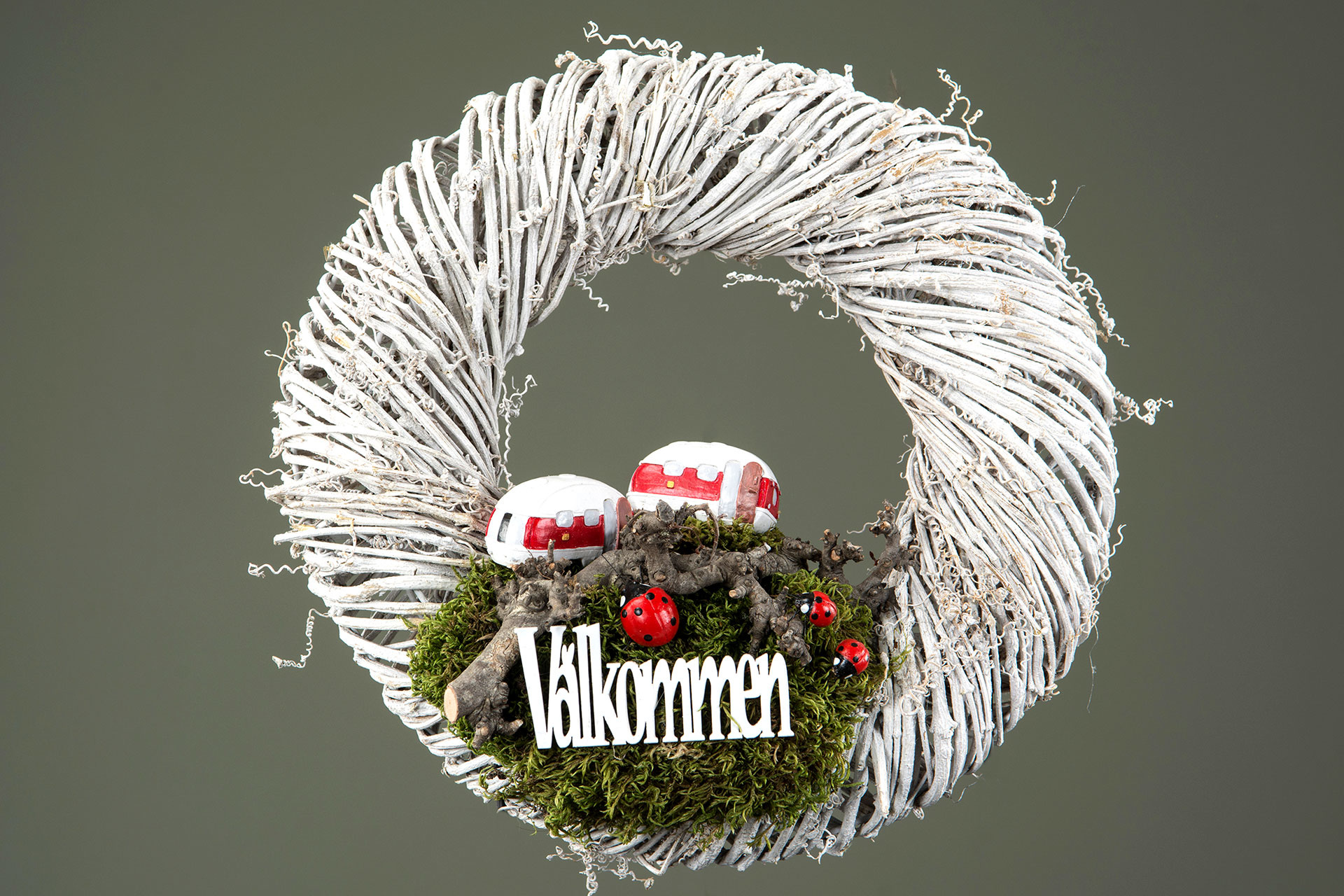 Söt stuga på en metallpinne / blomstick. Perfekt att dekorera en krans med, sticka ner i blomkrukan eller annan plantering. Det är den större stugan på första och andra bilden som säljs i 2-pack.