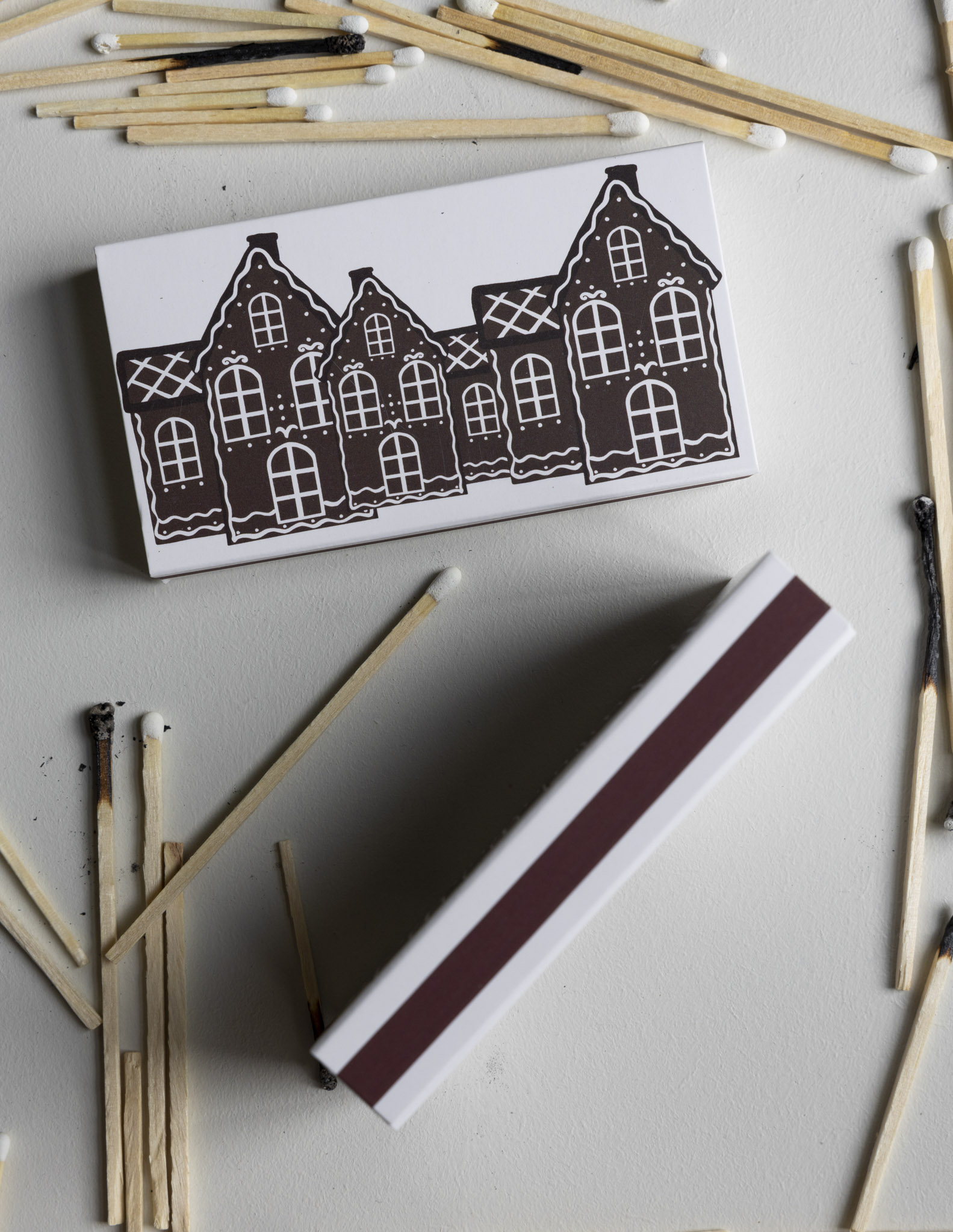 Stor tändsticksask / tändstickor med juligt motiv på båda sidorna. Lika användbara som en fin dekoration på bordet bredvid ljusstakarna. Alltid nära till hands för att tända ljus och skapa harmoni.