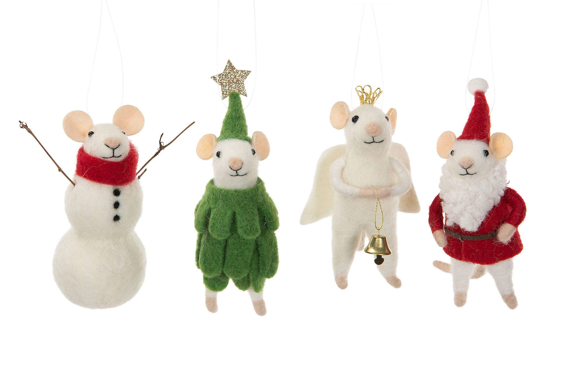En mix av möss i juleskrud. Innehåller 1 st snögubbe, 1 st julgran, 1 st ängel samt 1 st tomte. 4-pack.