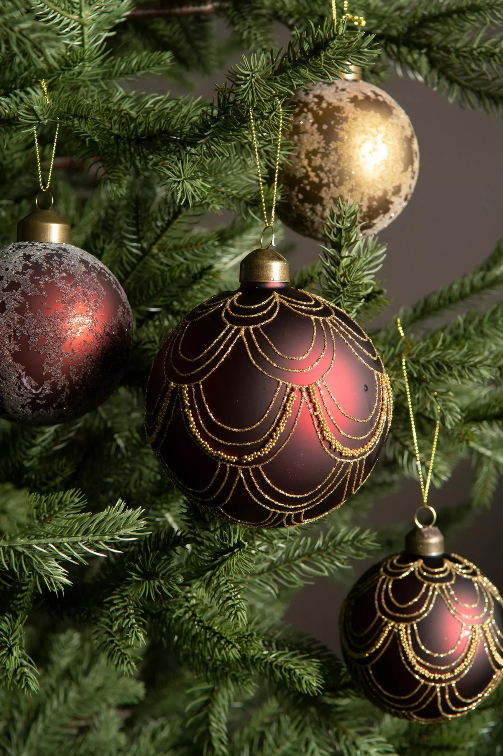 Tidlös och dekorativ julgranskula att hänga i granen eller att dekorera med.