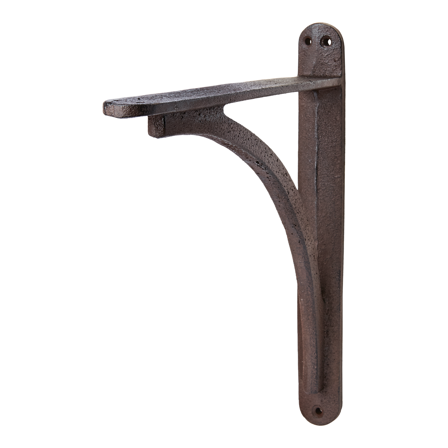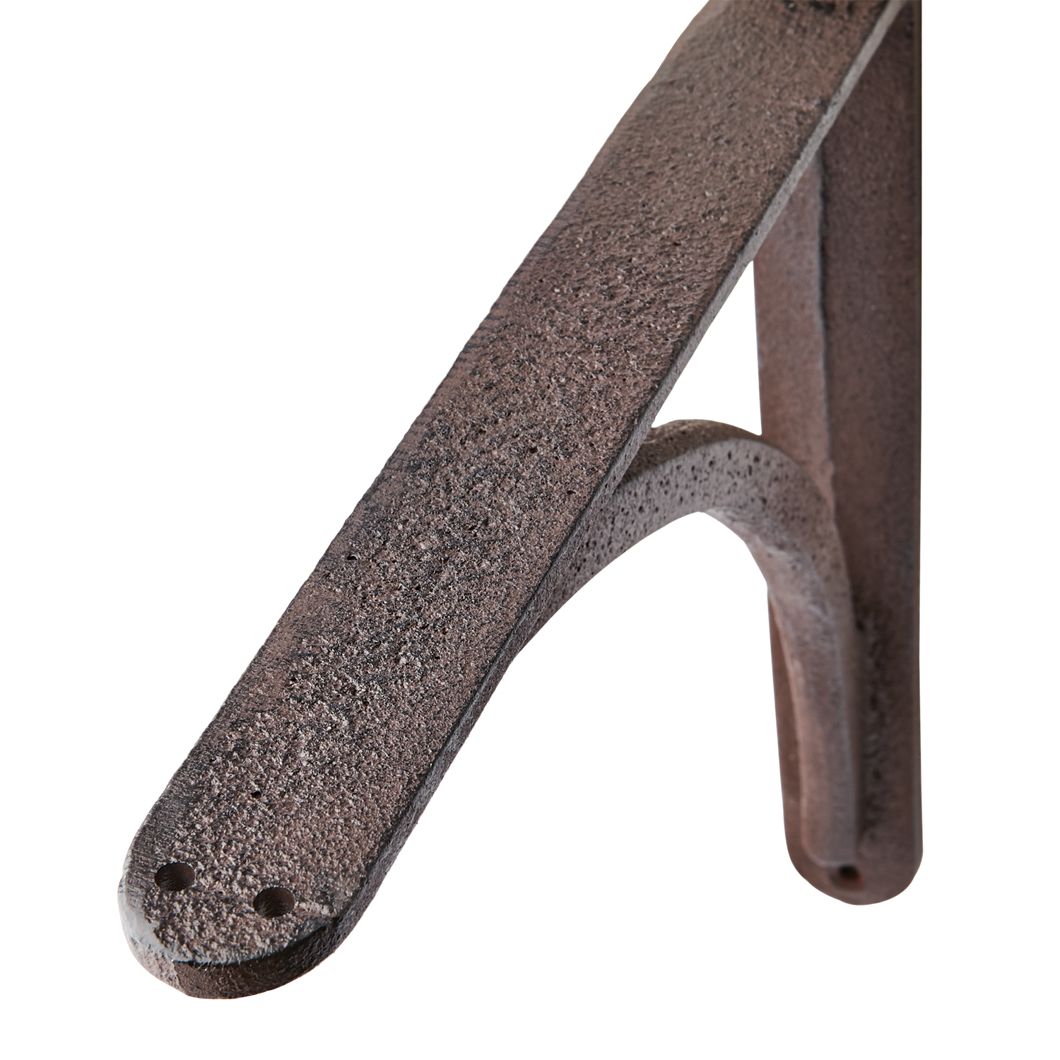Konsol i brun/svart järn med sirliga detaljer. Kommer fortsätta patineras om den utsätts för fukt. Kan användas åt båda håll.