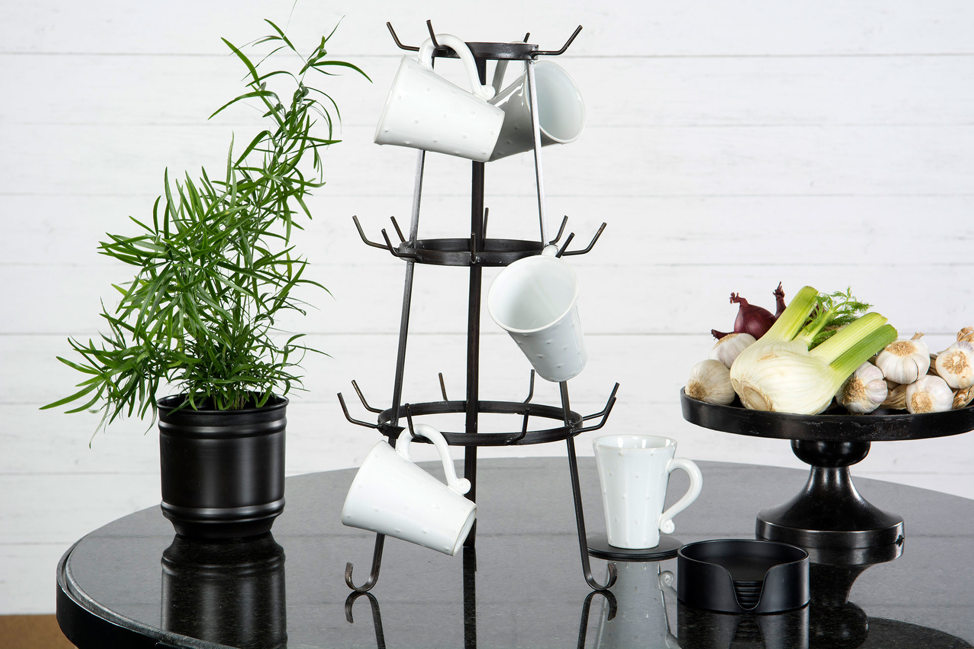 Koppställ / Mugghållare i svart metall. En jättefin och praktisk detalj till köket.