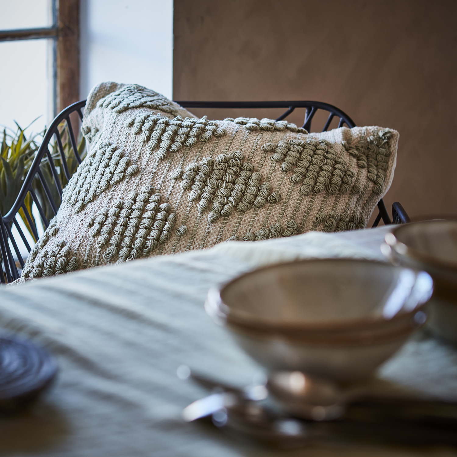 Mysigt kuddfodral i färgen beige / jute med fransar. Vit baksida och dragkedja. Komplettera med vår fluffiga innerkudde i dun för extra myskänsla.