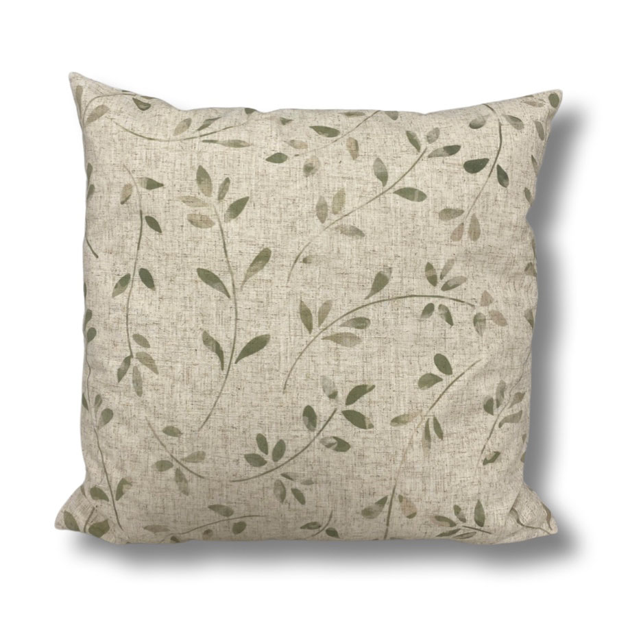Kuddfodral med ett vackert mönster av kvistar och blad. Tvättas enkelt i maskin vid behov. Tillverkad i en polyesterkvalité som har en känsla och struktur av linne. Dragkedja i kanten.