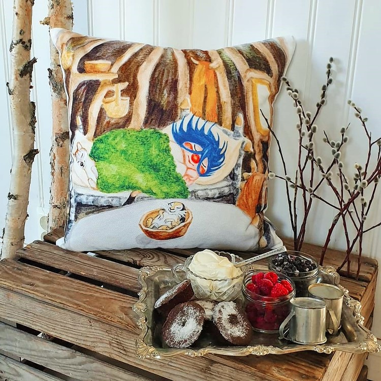 Superfin kudde med Plupp och renarna. Passar lika bra i barnrummet som i fjällstugan.