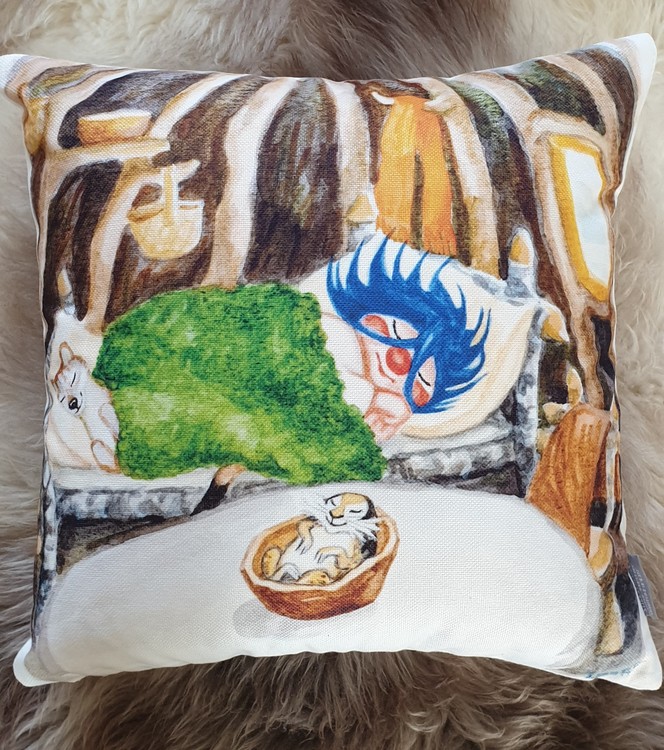 Superfin kudde med Plupp, Lämmel och Hermelin. Passar lika bra i barnrummet som i fjällstugan.