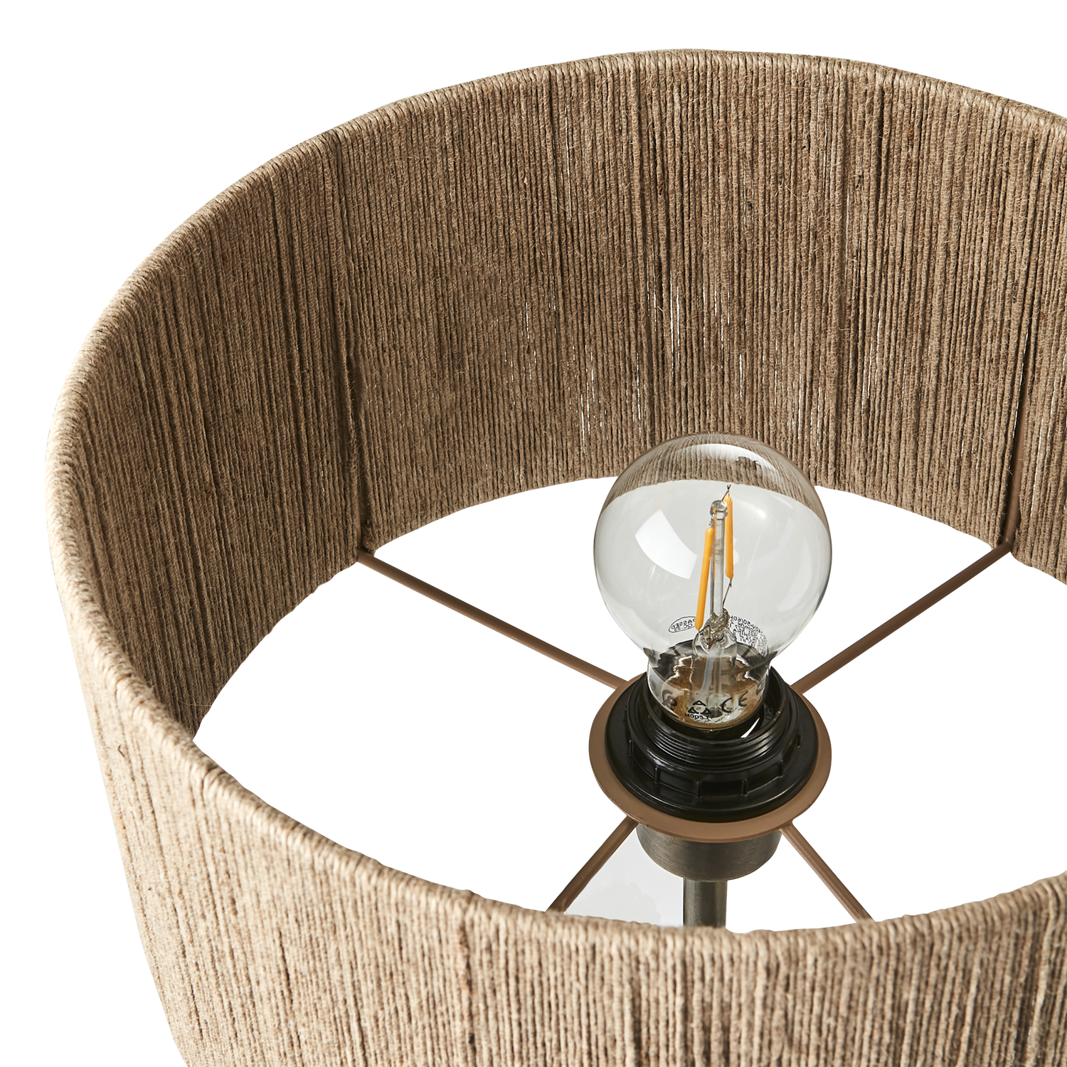 Maffig bordslampa i järn där jutesnöre virats in som silar ljuset så fint genom trådarna. Den blir garanterat ett blickfång i ditt hem med sin fina form. Vi har lampan i 2 storlekar.