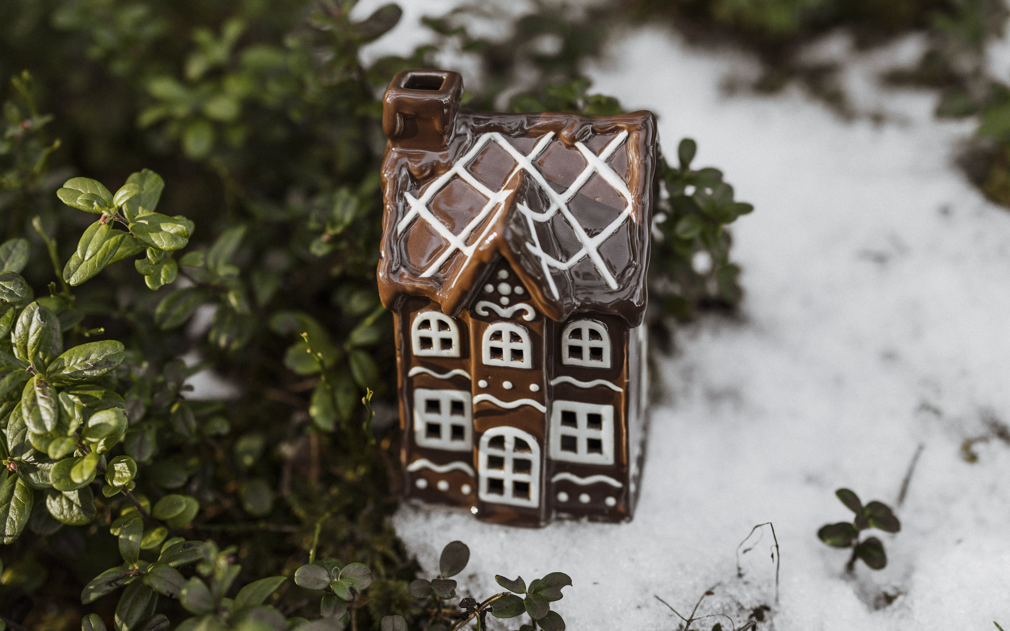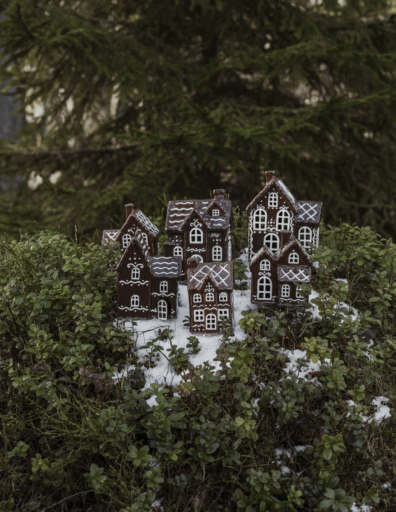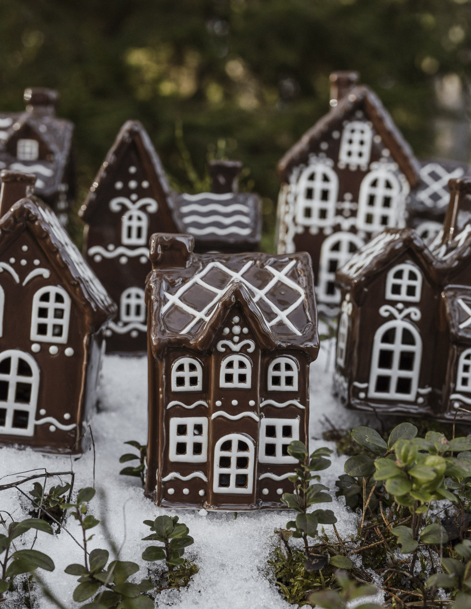 Mysigt ljushus / huslykta pepparkakshus i glaserad keramik i serien Julbyn. Du kan välja att placera huslyktorna tillsammans på sidobordet och skapa en by med upplysta hus genom att placera en ljusslinga inuti dem. Husens olikheter i form och storlek gör det tacksamt att skapa en dynamik oavsett om du väljer att kombinera tre hus eller nio. Placera byn där det finns gott om utrymme så blir dem garanterat ett centralt blickfång i rummet.