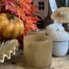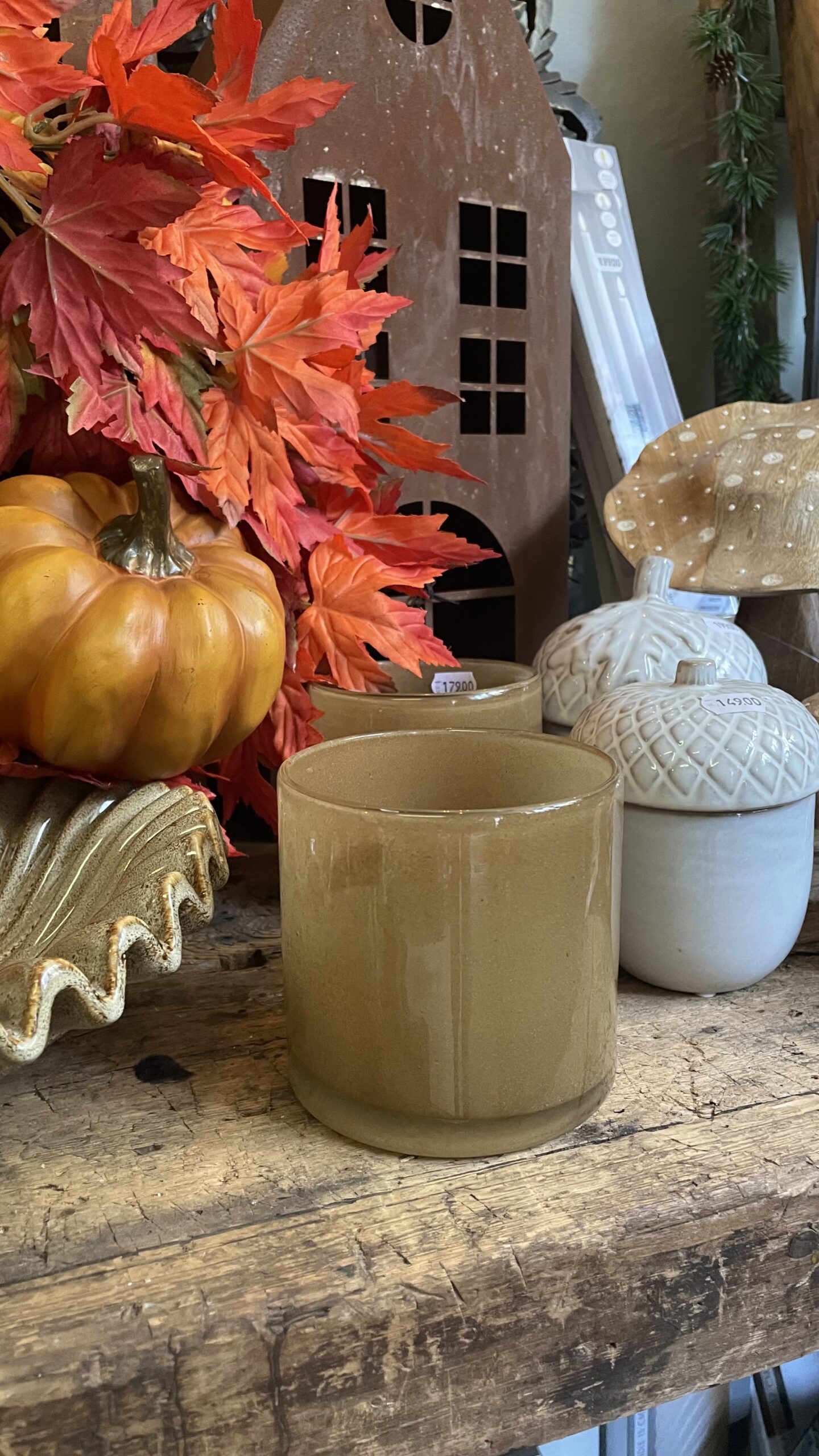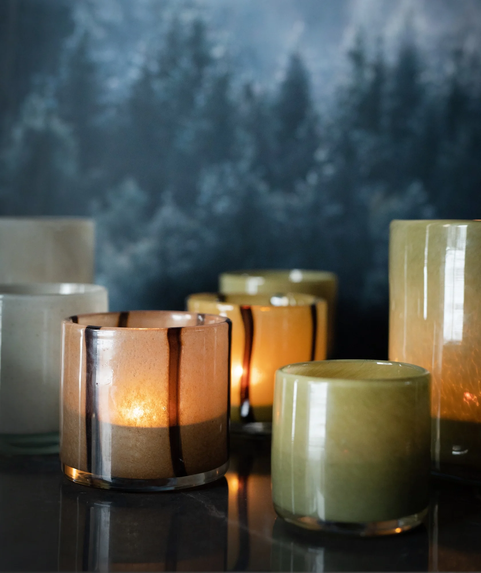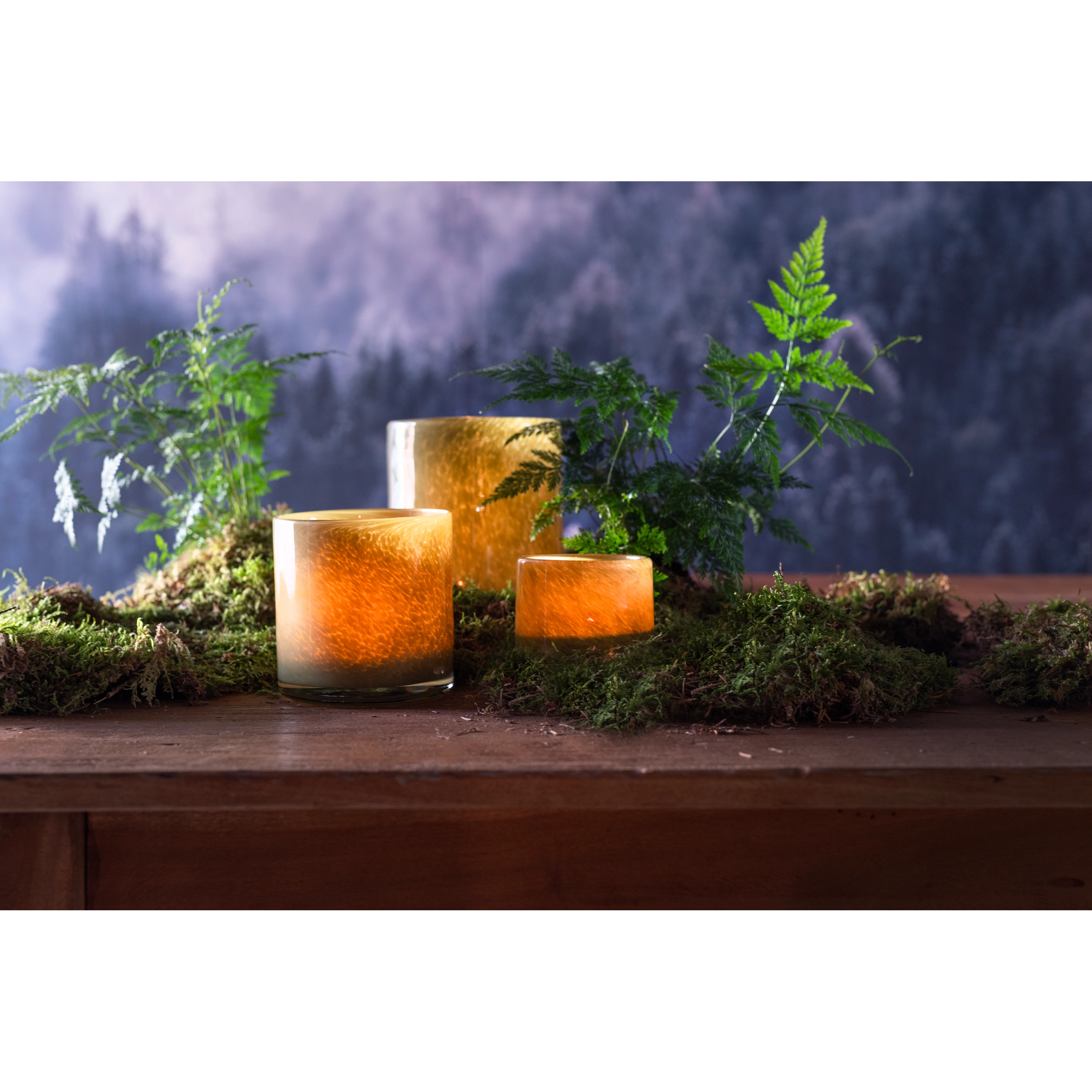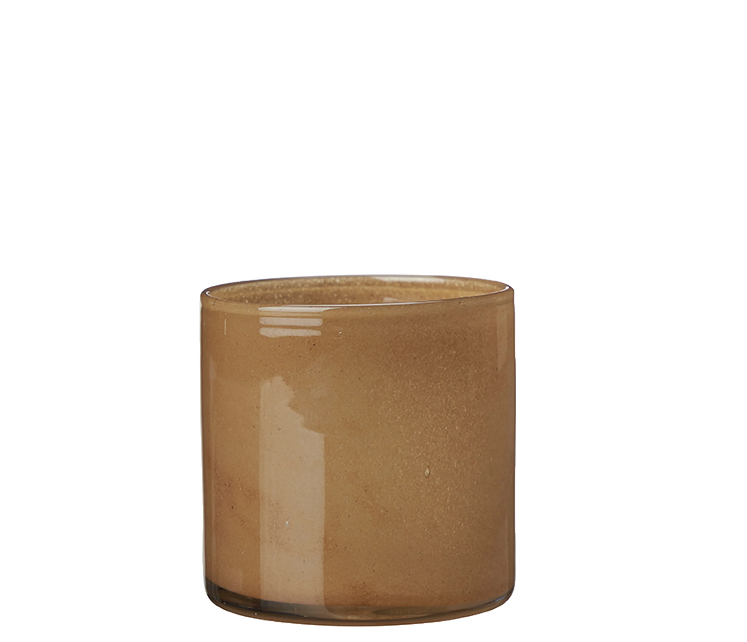 Stilren ljuslykta i bärnstensbrunt glas med plats för värmeljus. Ljuslyktan skapar en mysig höstkänsla i ditt hem. Förstärk känslan genom att skapa ett stilleben med fler höstdekorationer.
