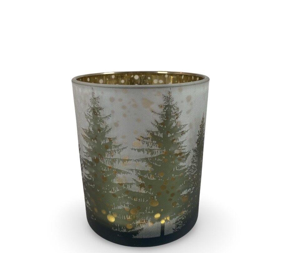 Mysig ljuslykta i frostat glas med motivet av en julgran. Ljuslyktan finns i 3 storlekar.