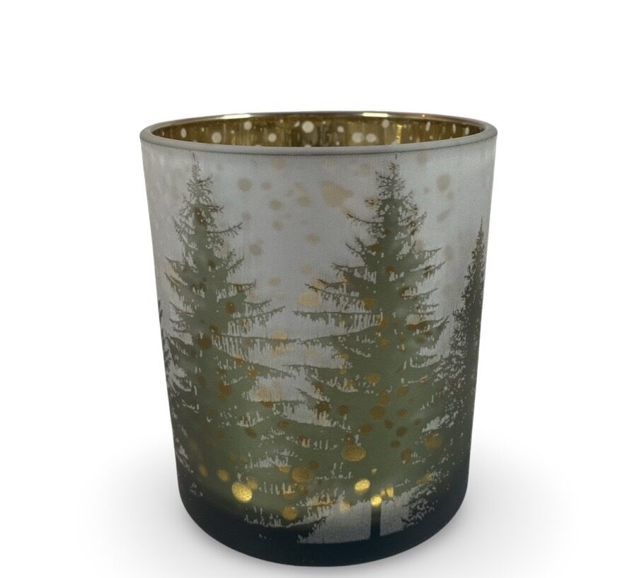 Mysig ljuslykta i frostat glas med motivet av en julgran. Ljuslyktan finns i 3 storlekar.