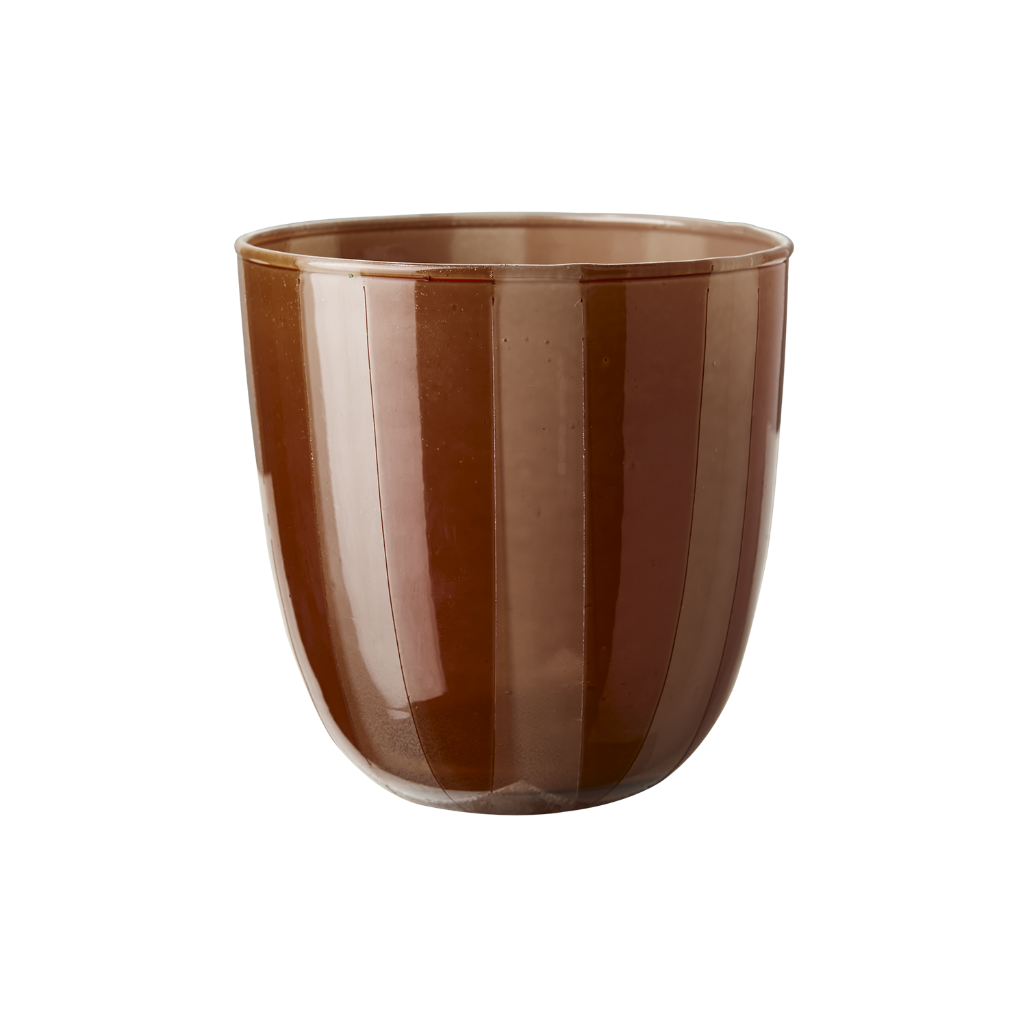 En riktig smällkaramell till ljuslykta i en bordeaux / beige randig kulör. Plats för värmeljus.