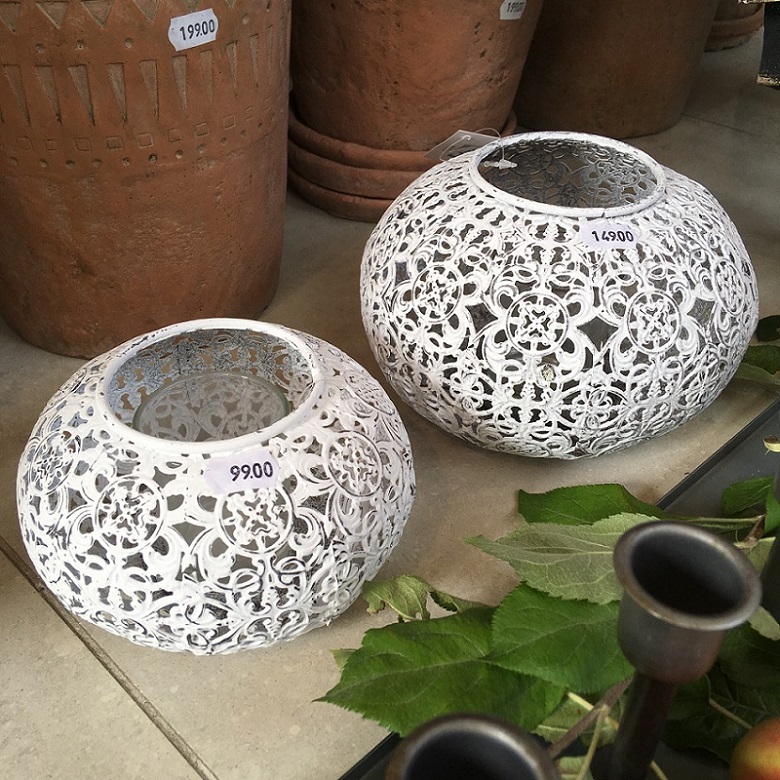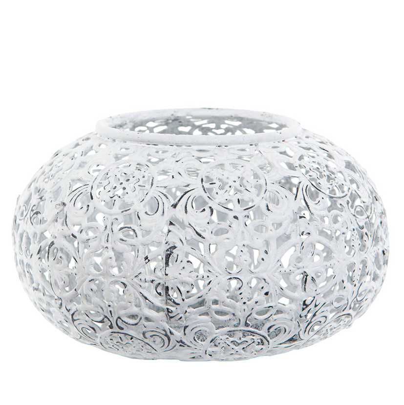 Mysig ljuslykta för värmeljus med uttagbar glascylinder som sprider ett väldigt vackert sken genom metalldekoren.