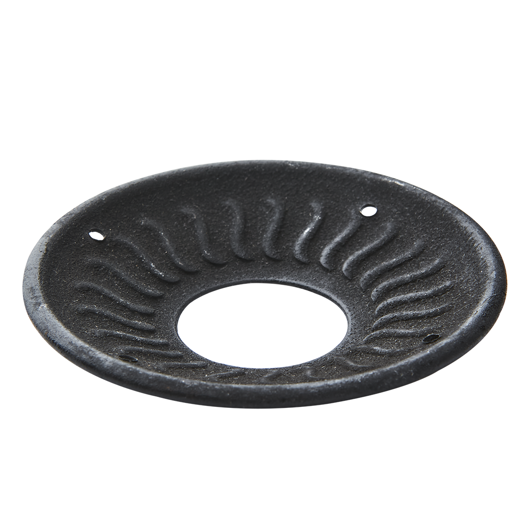 Stilren ljusmanschett i svart plåt. Diameter på hålet är 2,4 cm. Fortsätter att patineras då de utsätts för fukt.