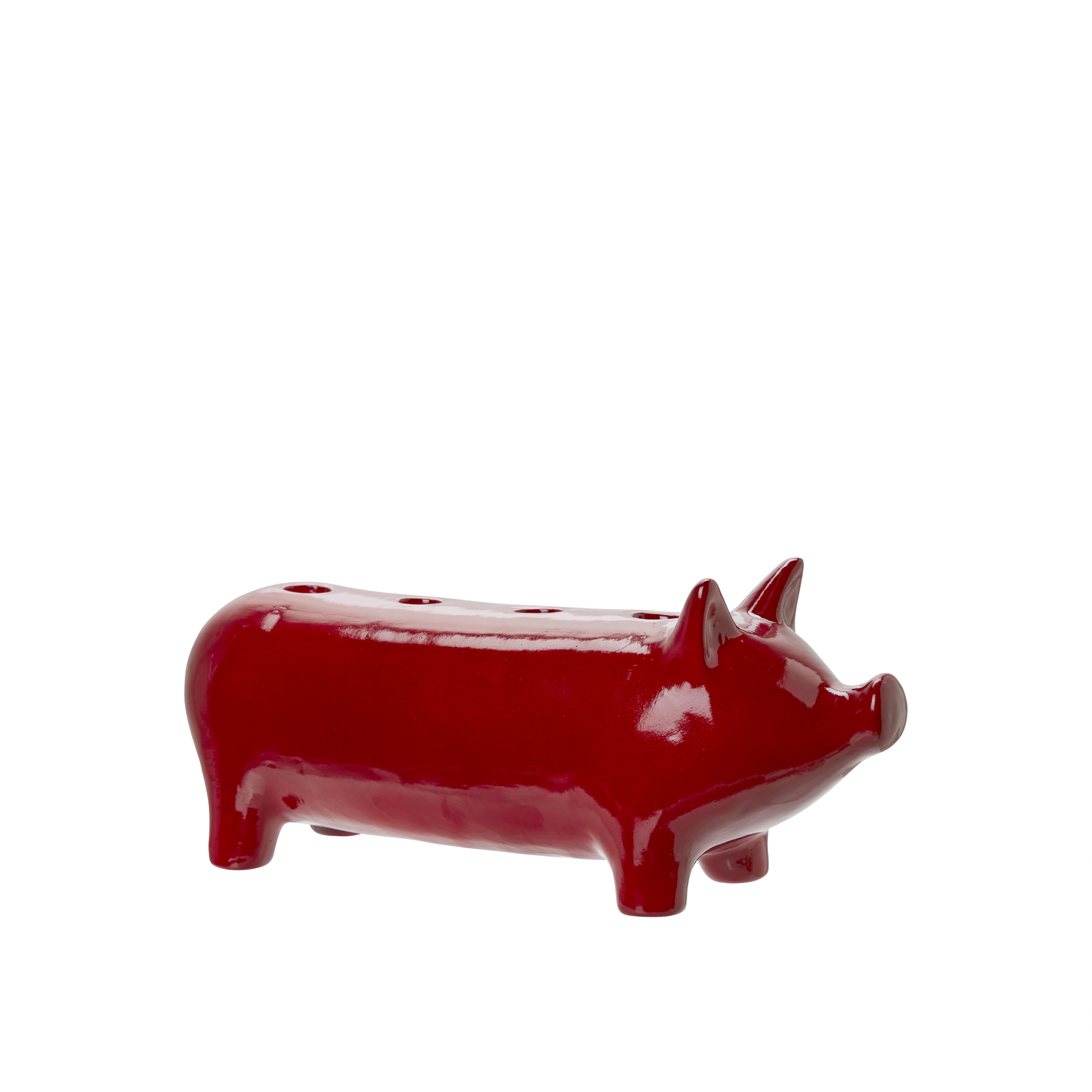 En klassisk juldekoration i form av en röd julgris i keramik med plats för 4 st små smala julgransljus på 1,2 cm.