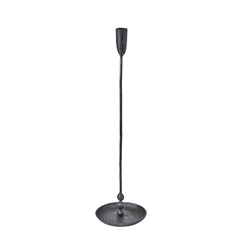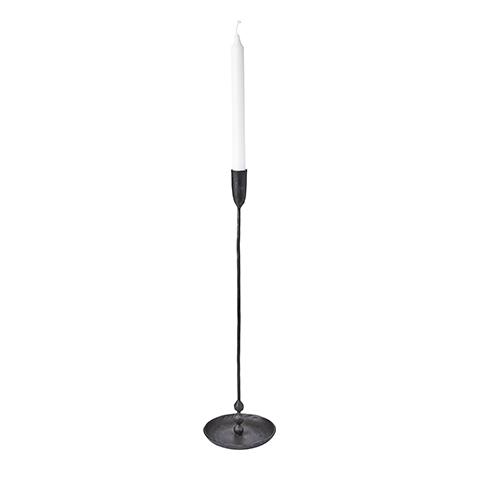 En tidlös ljusstake med skruvstäd i svart smide. Passar både för värmeljus och kronljus då två olika ljushållare medföljer.