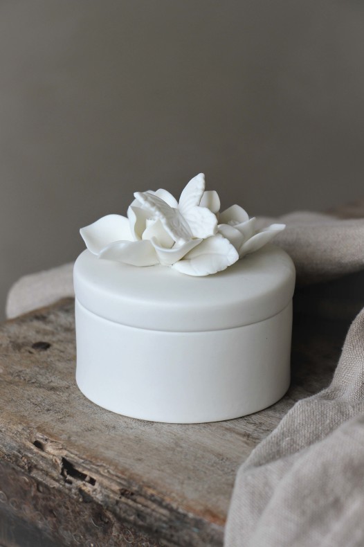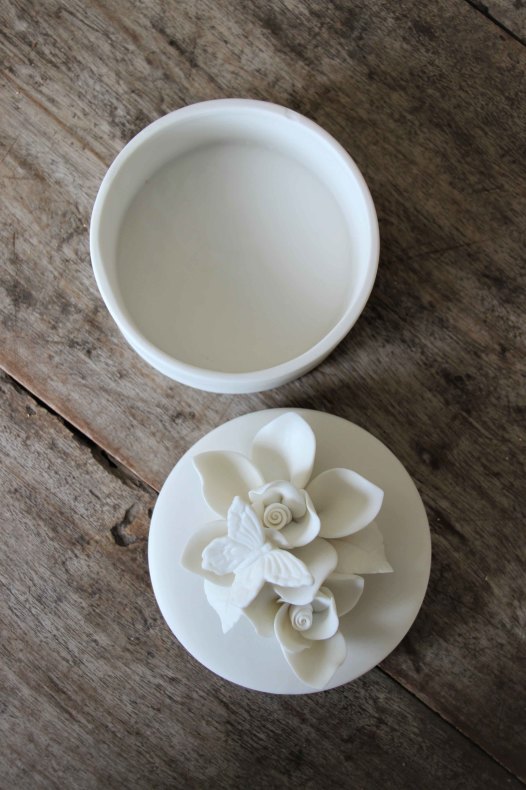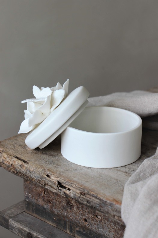 Mysig box / ask från Majas Cottage serie Madame Butterfly. Varje exemplar är handgjort och därmed unikt. Finishen kan ha små pinholes och toolingmarks från bränningen, små olikheter kan därför förekomma.