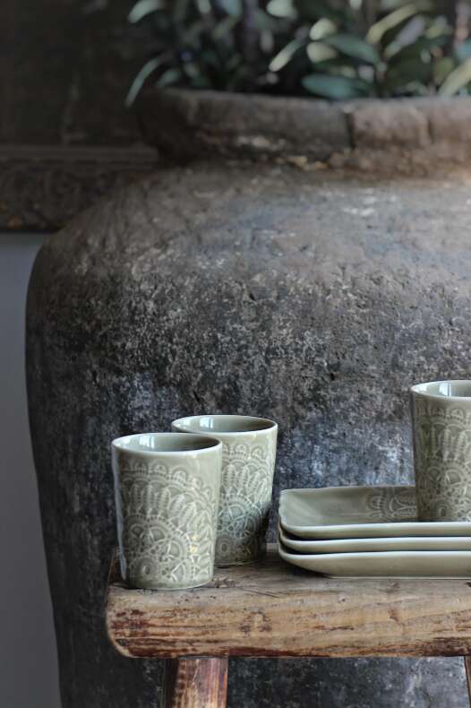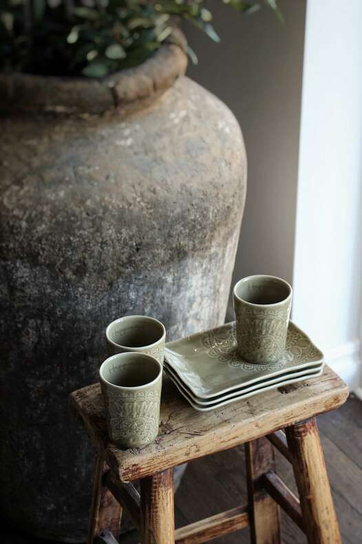Variationer och små hål i keramiken kan förekomma. Dem uppkommer genom den handgjorda processen och ger produkten dess naturliga och rustika finish.