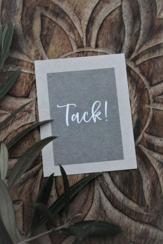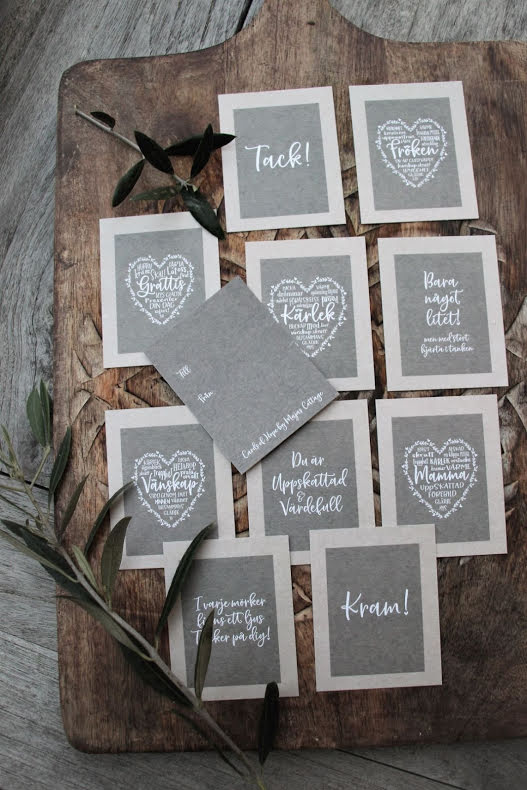 Kort i 200 grams obestruket papper med hål för snöre och band som säljs med förmån till Barncancerfonden