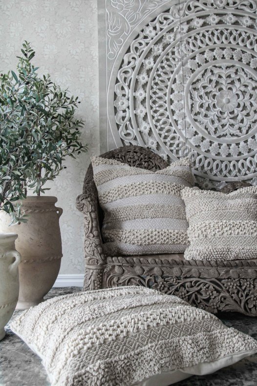 Mysigt kuddfodral Boho från Majas Cottage i grövre bomull.