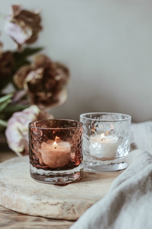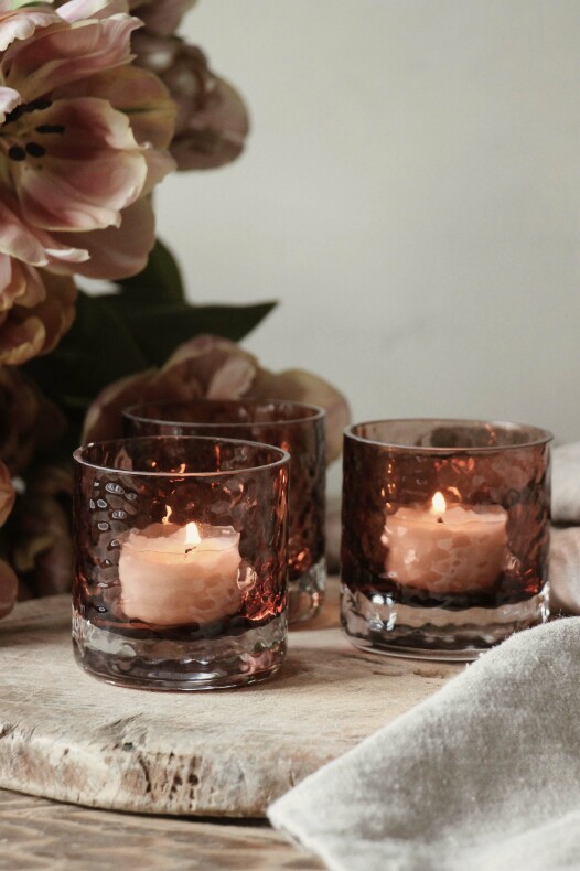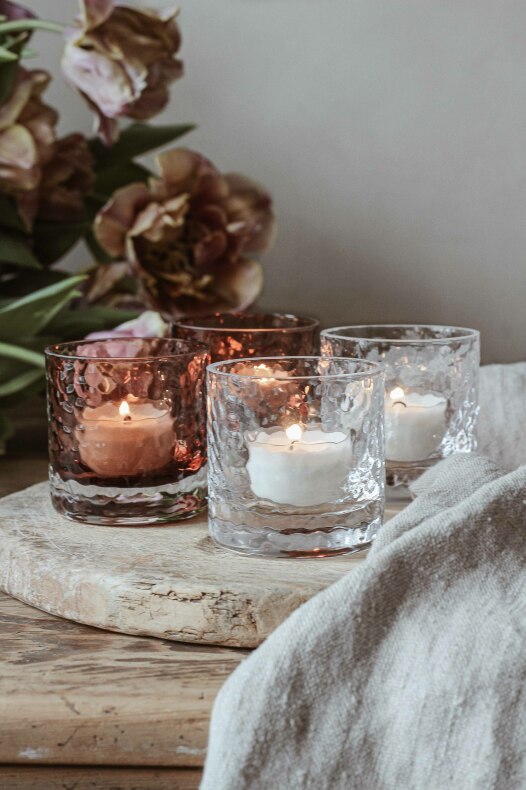 Mysig ljuslykta från Majas Cottage. Hamra lyktorna är en serie med stilrena enkla lyktor i hamrat glas.