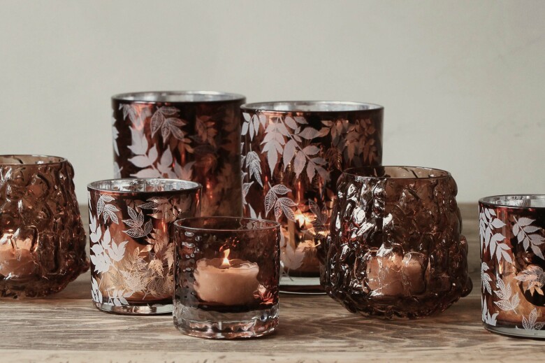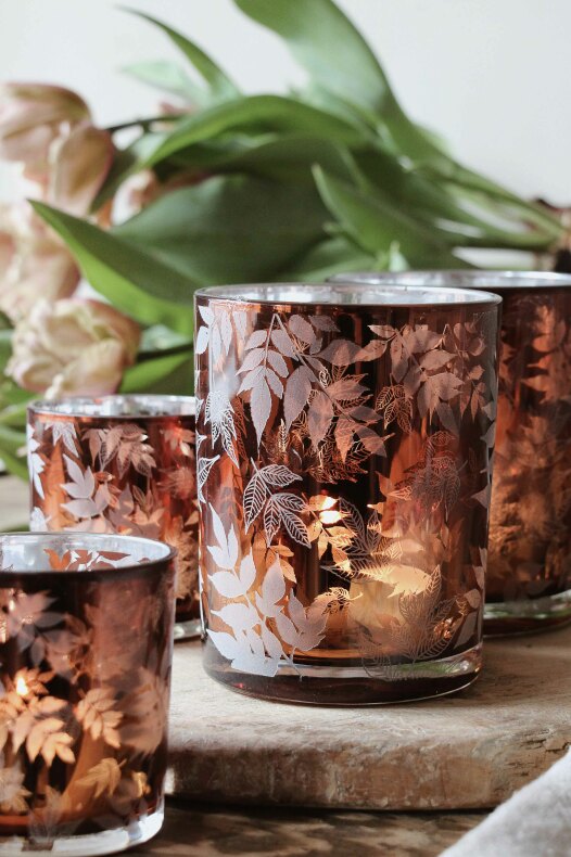 Mysig ljuslykta med höstlöv motiv. Lyktan ger ett vackert sken när du tänt ljuset.
