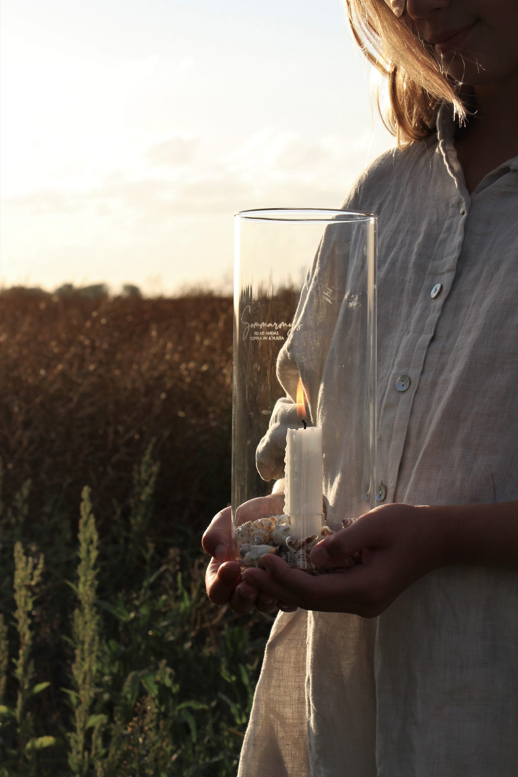 Mysig ljusstake / lykta i klarglas med plats för kronljus från Majas Cottage.