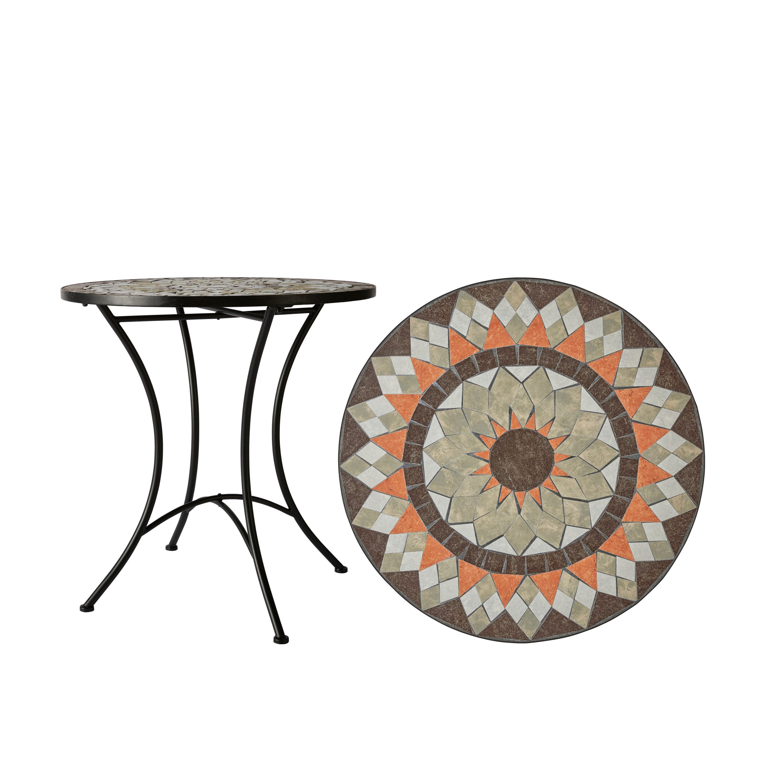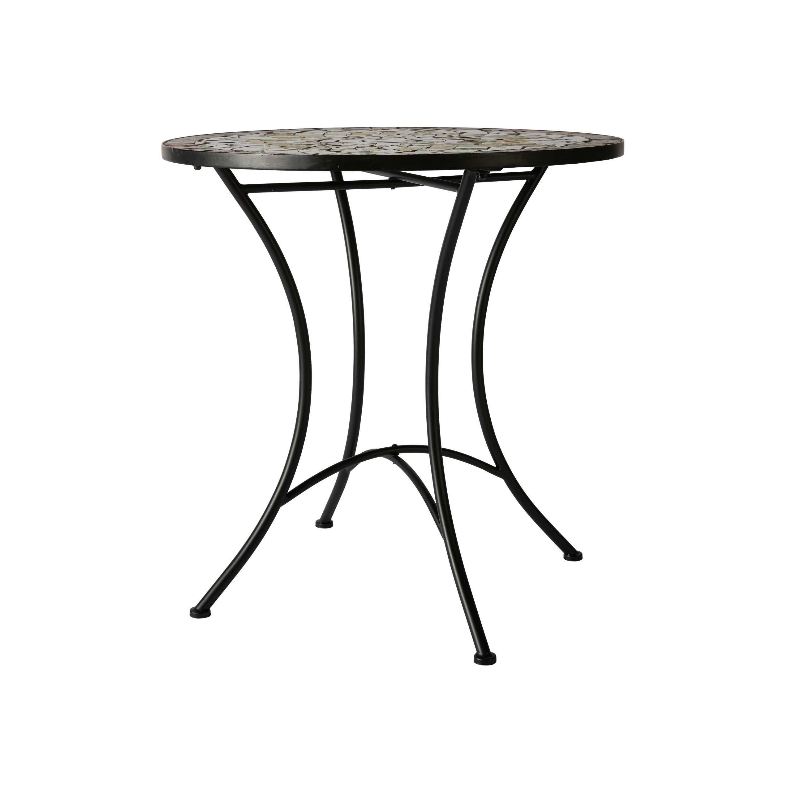 Underbart mosaikbord / cafébord / trädgårdsbord / med svart underrede i järn. Bordet passar lika bra på balkongen som ute i trädgården, eller varför inte inomhus?