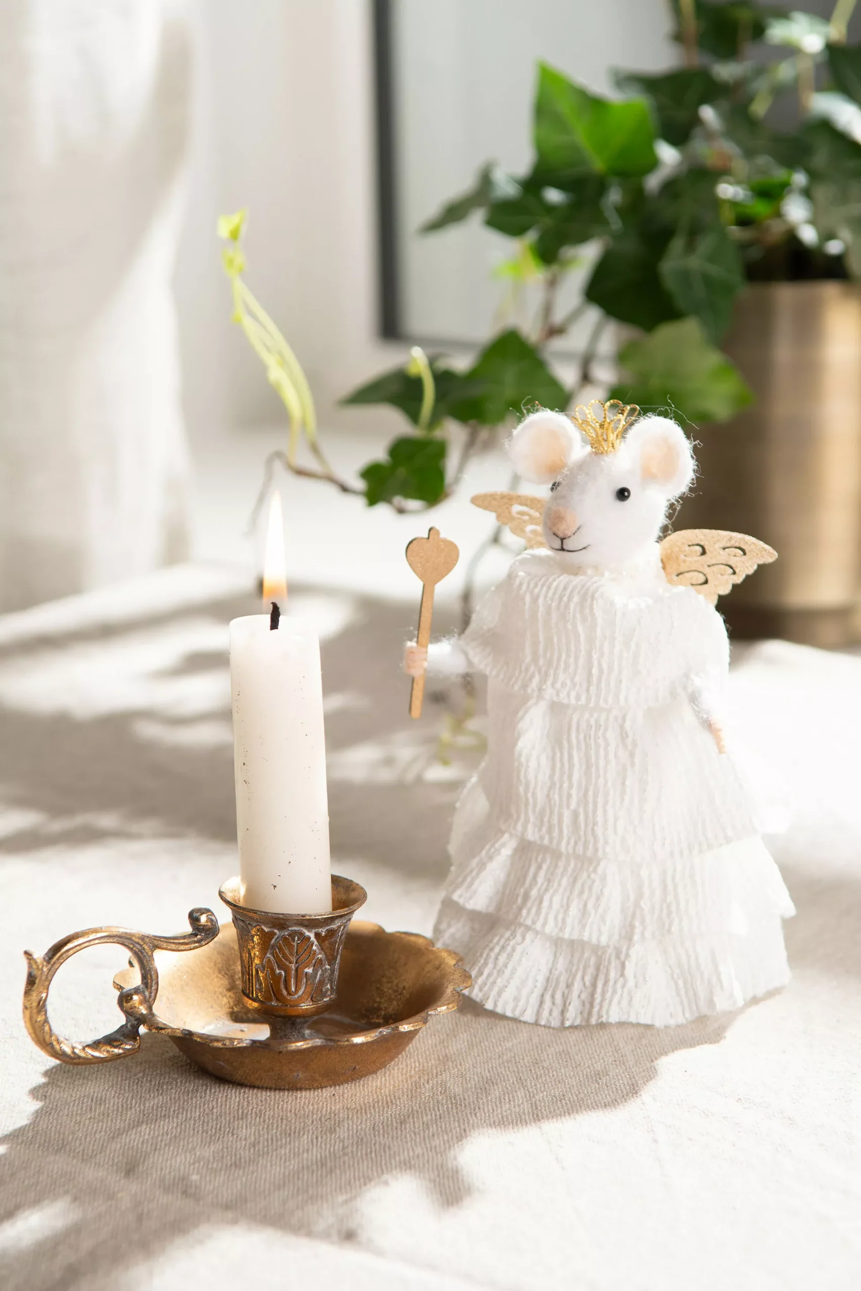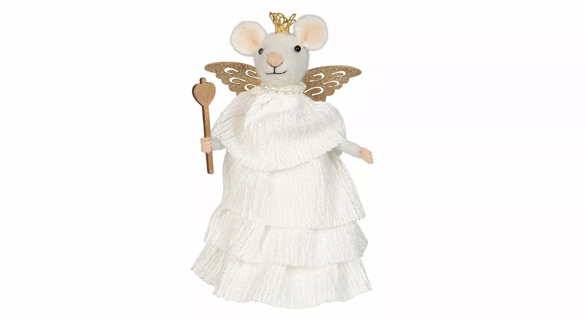 Söt mus i form av en ängel i ull. Passar lika bra till jul som i barnrummet.